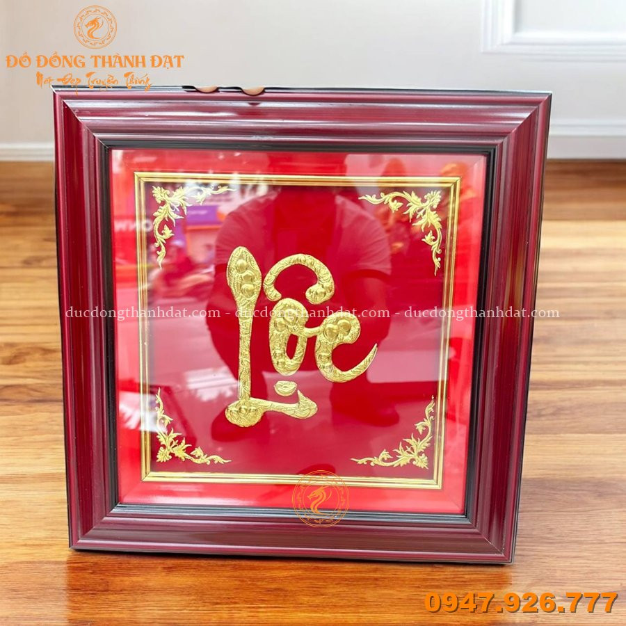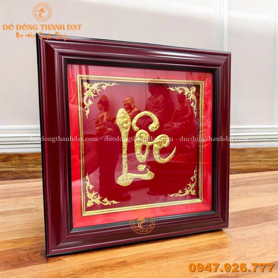 Tranh Chữ Lộc Đồng Mạ Vàng 40x40cm – Tinh Hoa Phong Thủy, Rước Lộc Vào Nhà
