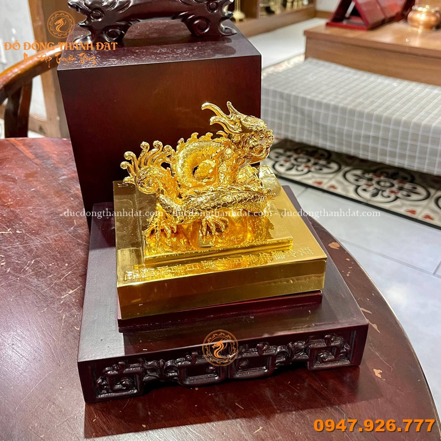 Ấn hoàng đế chi bảo bằng đồng mạ vàng 24K là một trong những vật phẩm mang đậm dấu ấn văn hóa cung đình xưa, biểu trưng cho quyền lực tối thượng và địa vị tối cao. Sản phẩm được chế tác từ đồng nguyên khối, phủ lớp vàng 24K (vàng 9999)  sáng bóng, tạo nên vẻ đẹp sang trọng, đẳng cấp.