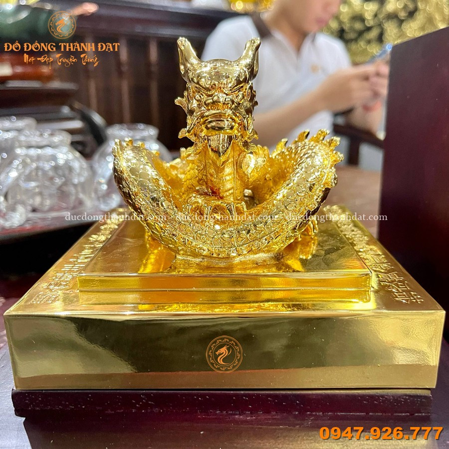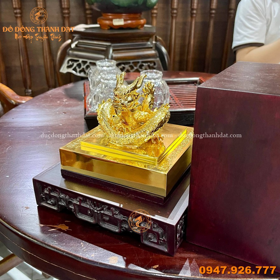 Thiết kế đế vuông vững chãi tượng trưng cho nền tảng bền vững, kết hợp cùng rồng uy nghi phía trên tạo nên tổng thể hài hòa giữa quyền uy và tài lộc.