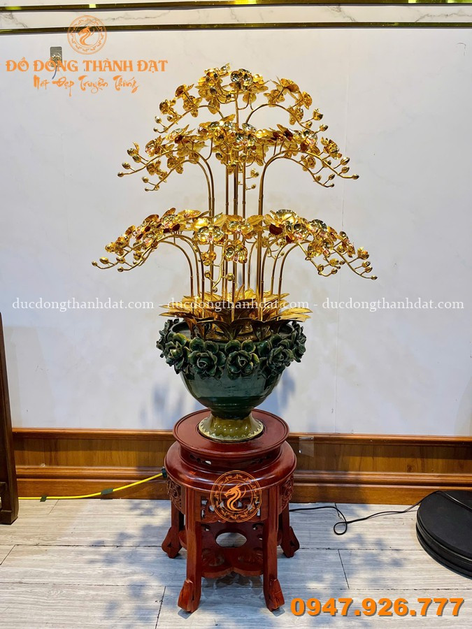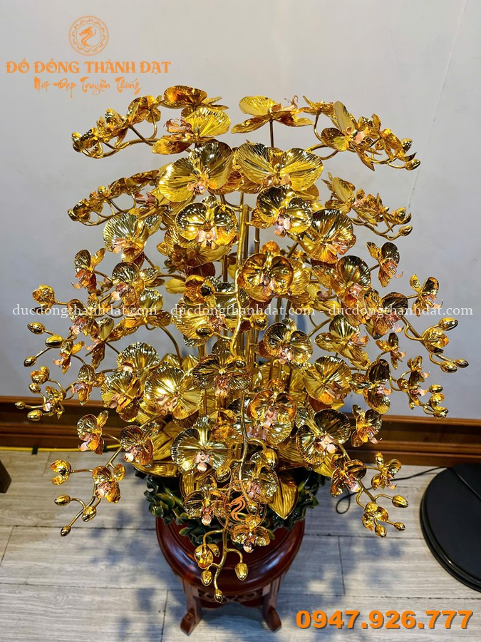 Mẫu chậu hoa lan hồ điệp mạ vàng 24K 18 cành cao 80cm tại Đúc Đồng Thành Đạt là dòng sản phẩm cao cấp, nổi bật với kích thước lớn, bố cục bề thế, rất phù hợp trưng bày trong không gian sang trọng như biệt thự, sảnh công ty, showroom hoặc làm quà tặng đẳng cấp.