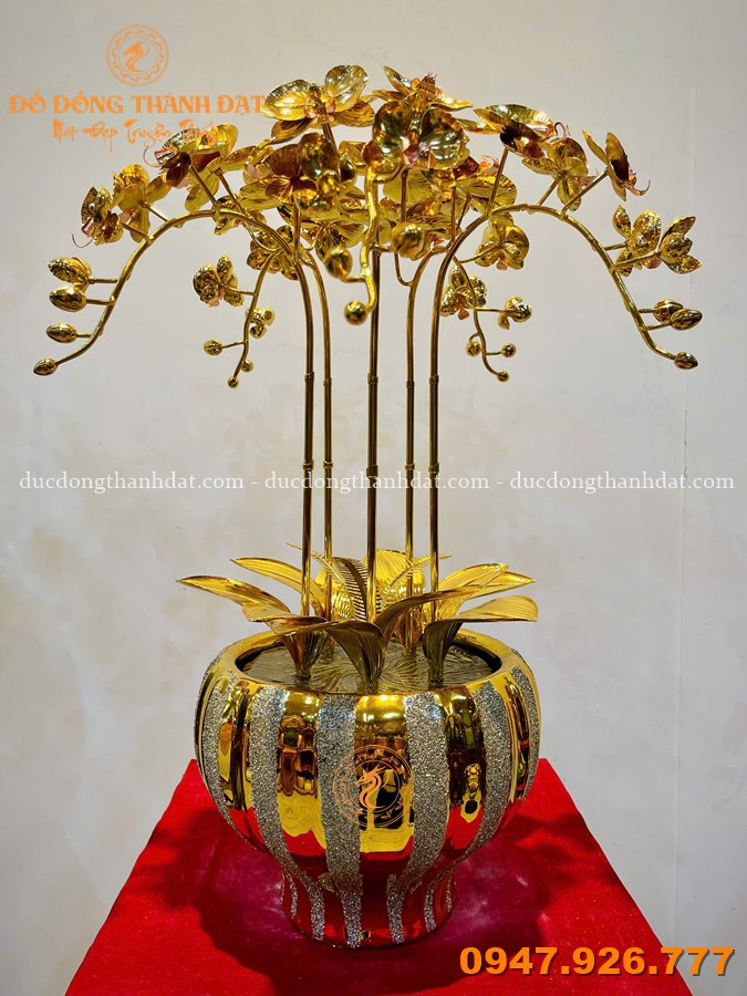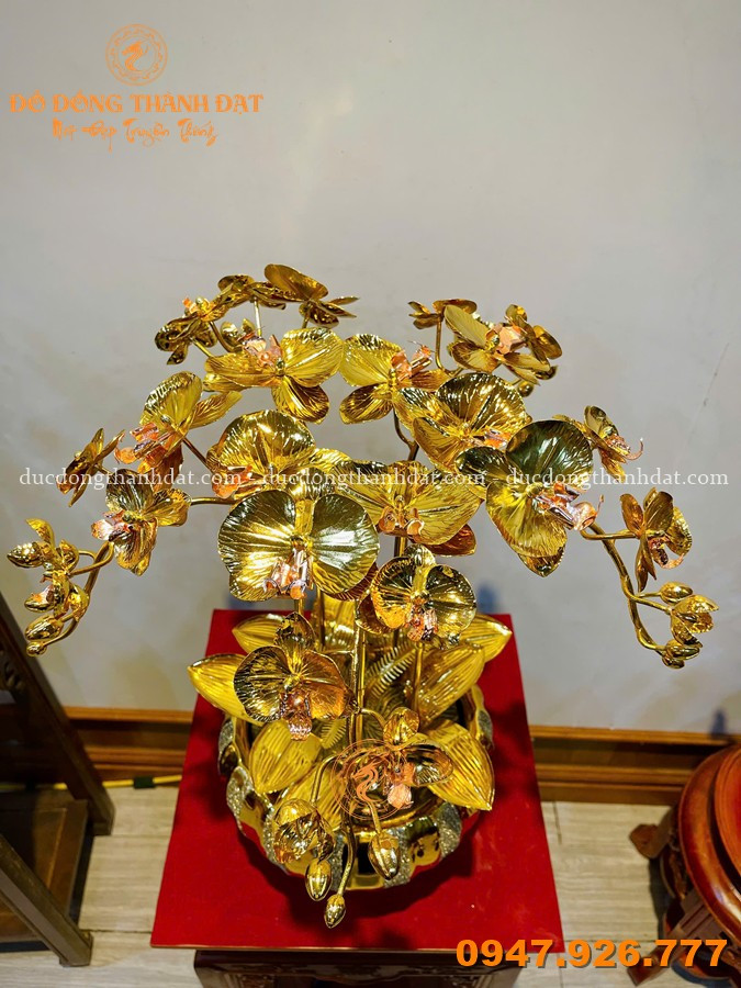 Chậu lan hồ điệp mạ vàng 24k là sản phẩm được chế tác hoàn toàn thủ công từ đồng cao cấp, sau đó mạ vàng 24K tạo nên màu sắc rực rỡ, sang trọng và bền đẹp theo thời gian.