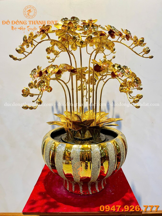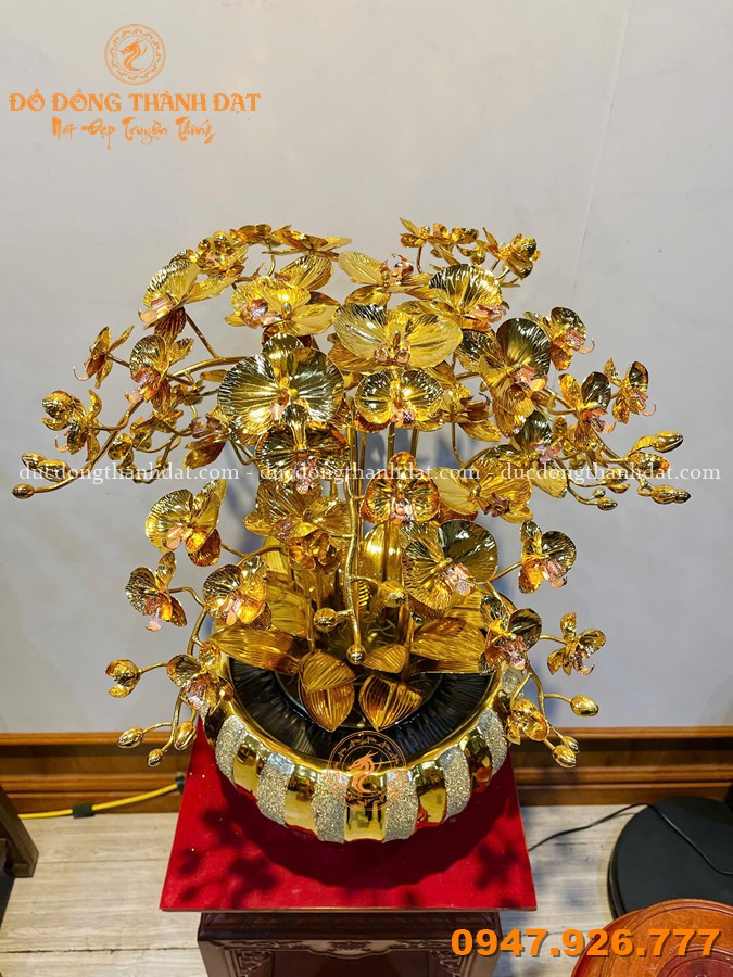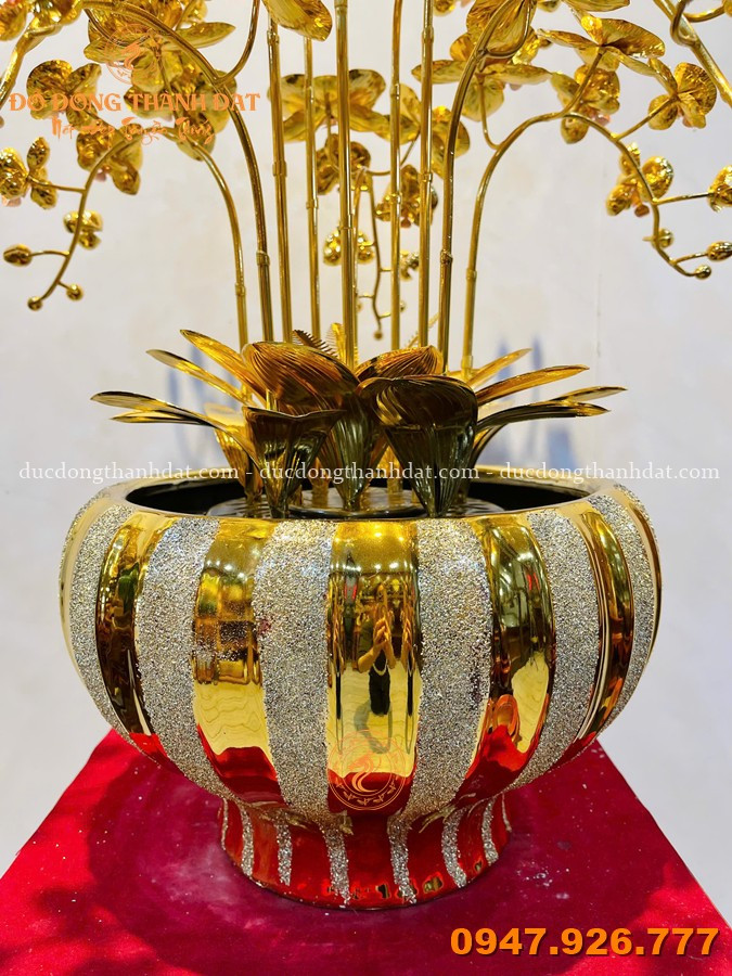 Chậu lan hồ điệp mạ vàng 24K, vàng 9999 10 cành cao 60cm có mức giá tùy thuộc vào: