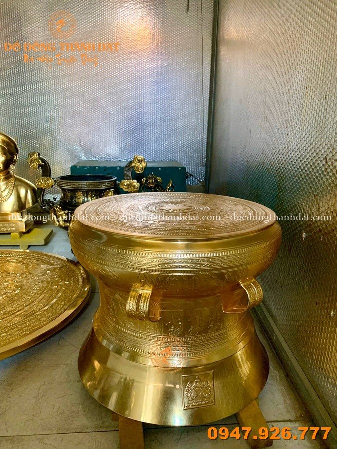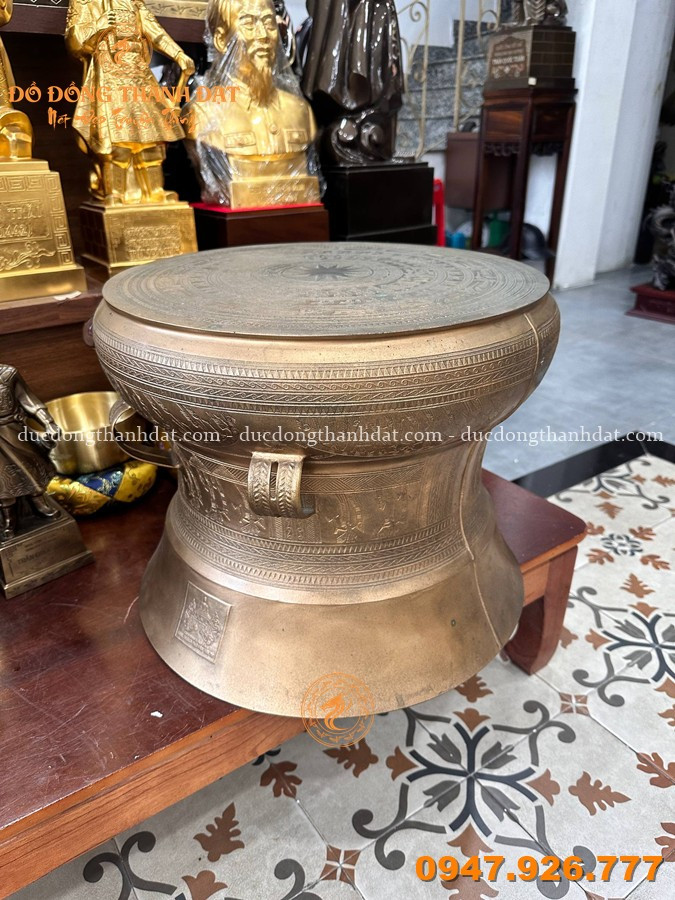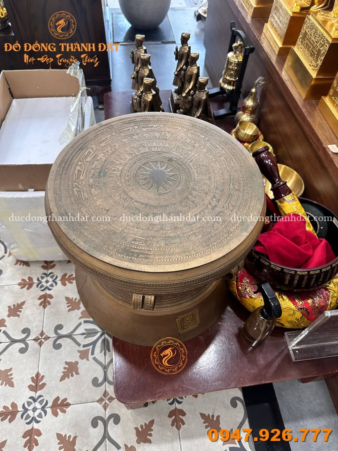 Quả trống đồng 50cm là một trong những kích thước phổ biến, vừa đủ nổi bật khi trưng bày nhưng vẫn phù hợp với nhiều không gian như phòng khách, phòng làm việc hay sảnh công ty.