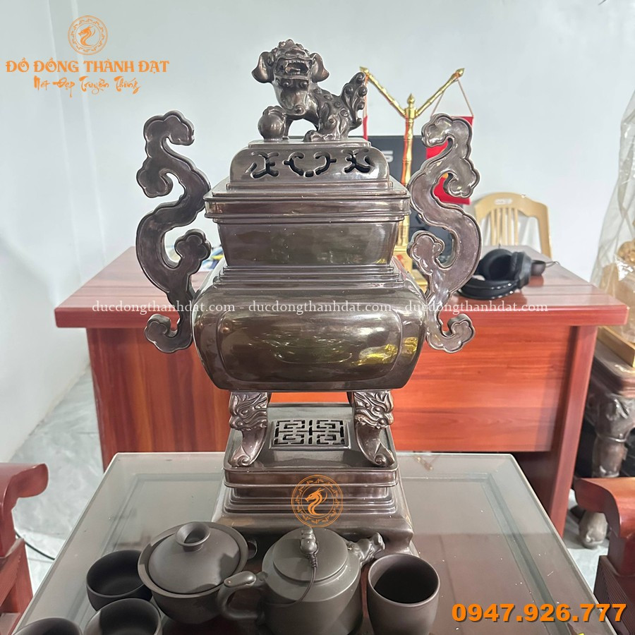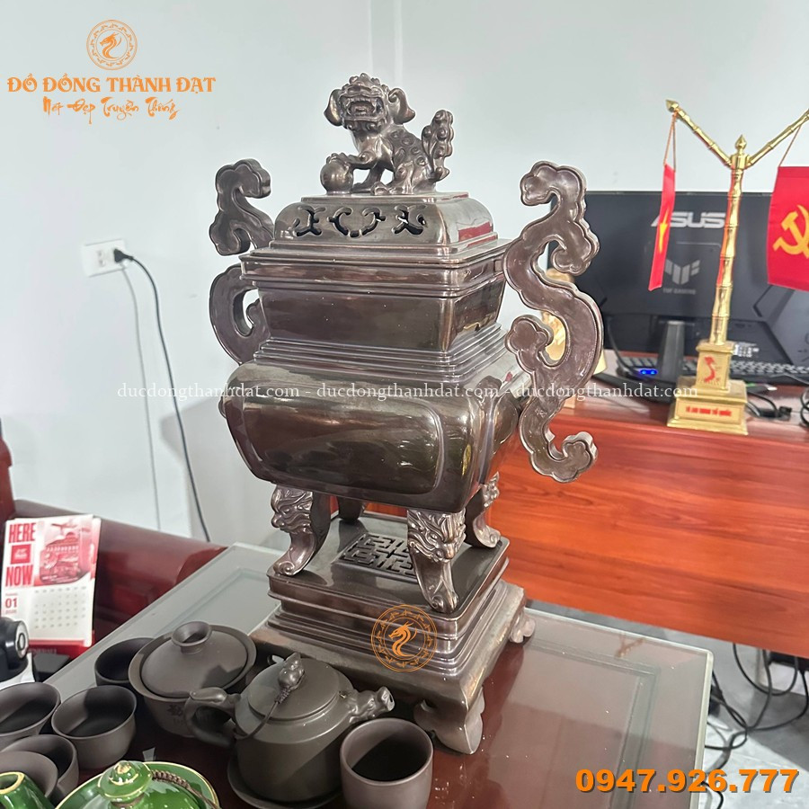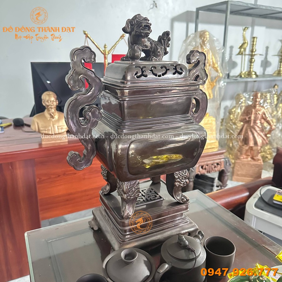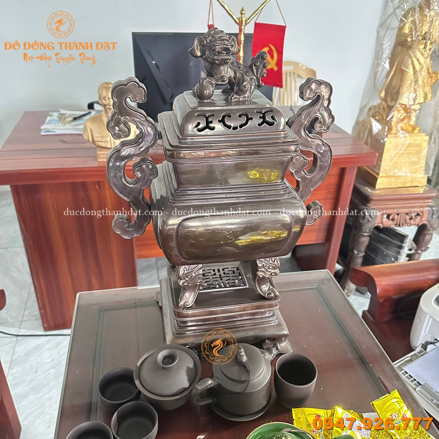 Đỉnh Đồng Vuông Đồng Đỏ Cao 60cm Màu Hun Cổ Điển – Biểu Tượng Linh Thiêng