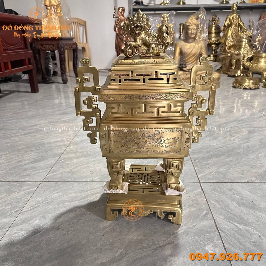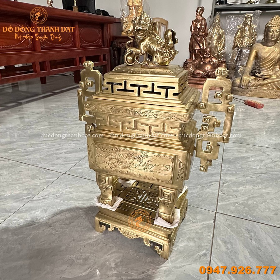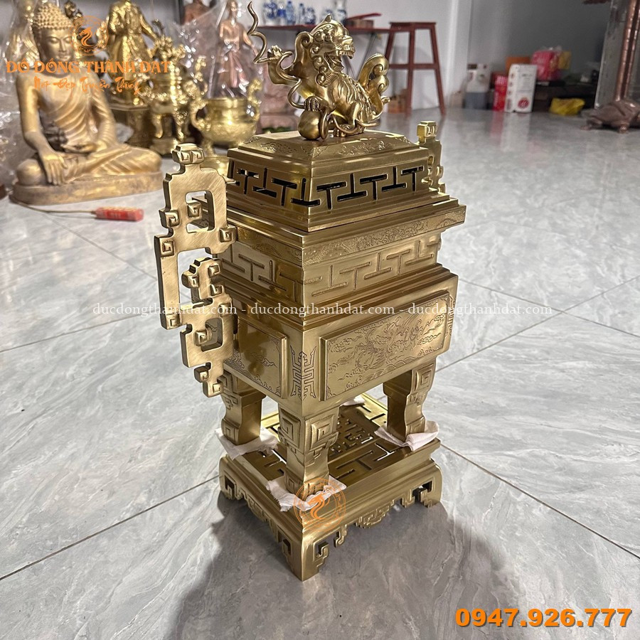 Đỉnh Vuông Đồng Vàng Catut Cao 62cm – Biểu Tượng Linh Thiêng
