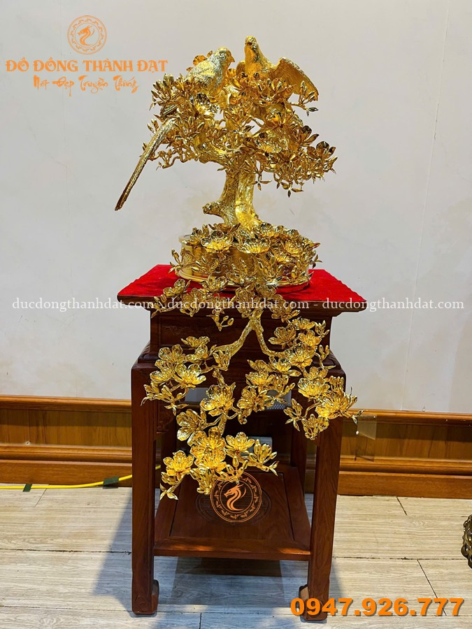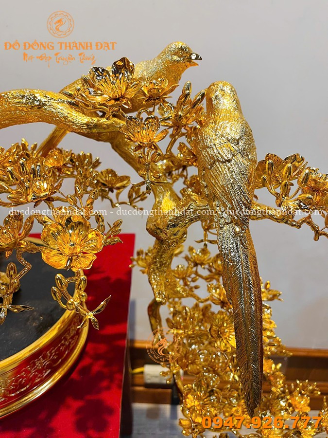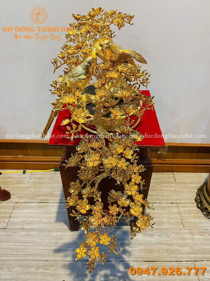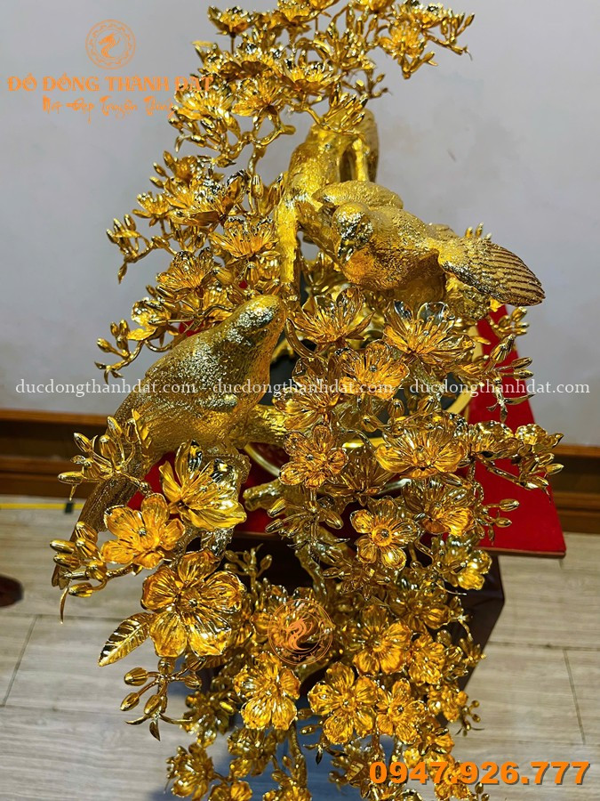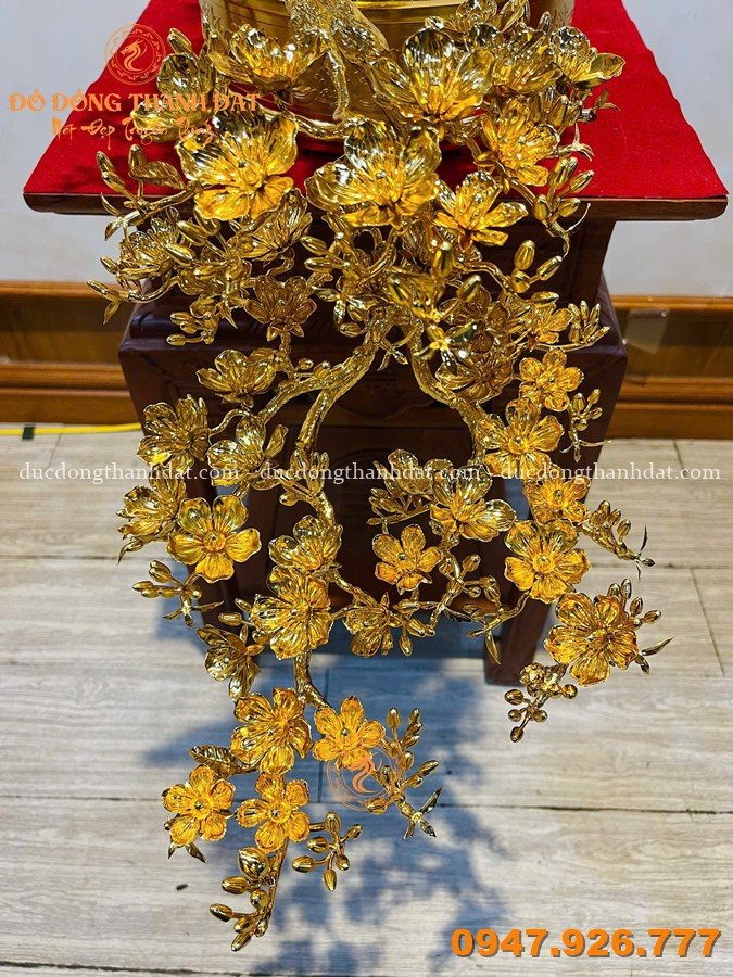 Mai vàng dáng đổ dài 92cm mạ vàng 24K, vàng 9999 không đơn thuần là một món đồ trang trí, mà là một tác phẩm nghệ thuật mang linh hồn của thiên nhiên được tái hiện bằng đôi tay tài hoa của các nghệ nhân Đúc Đồng Thành Đạt.