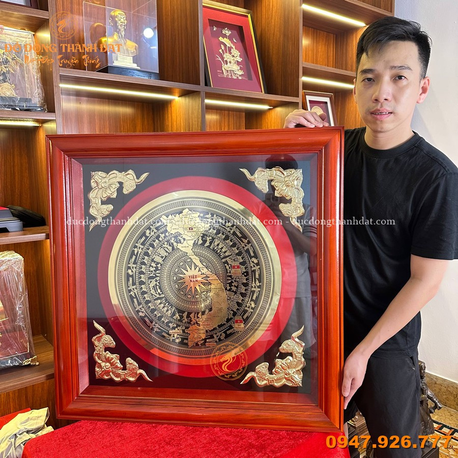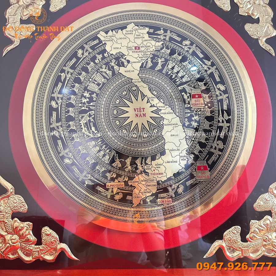 - Thiết kế: Mặt trống + bản đồ Việt Nam + họa tiết trang trí