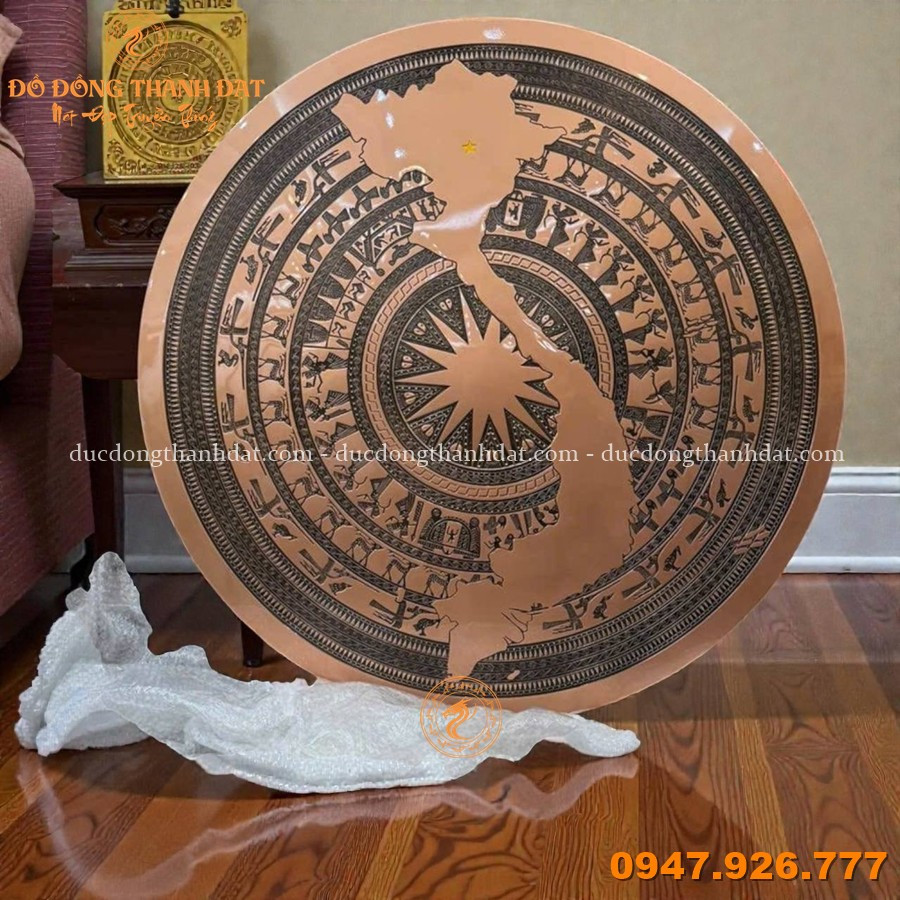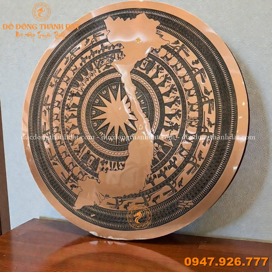 Mặt Trống Đồng Vân Chìm 70cm Có Bản Đồ – Đồng Đỏ Cao Cấp, Họa Tiết Sắc Nét, Giá Trị Cao