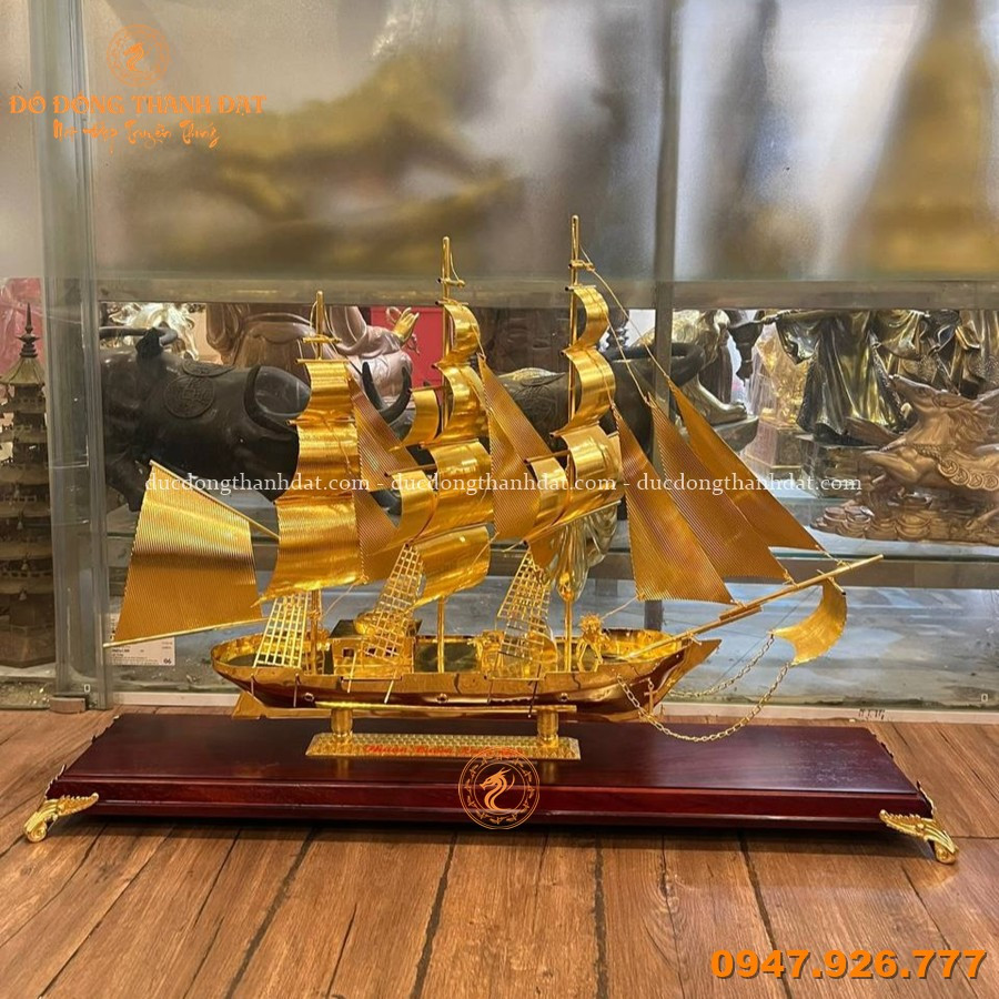 Từng chi tiết từ cánh buồm, thân thuyền đến dây buồm đều được chế tác thủ công tỉ mỉ, phủ lớp vàng 24K sáng bóng, bền màu theo thời gian tạo vẻ đẹp sang trọng cho sản phẩm.