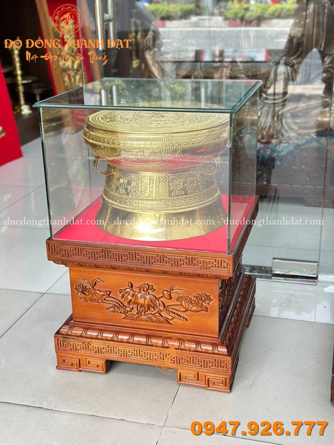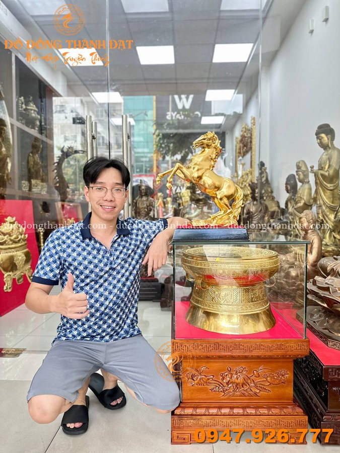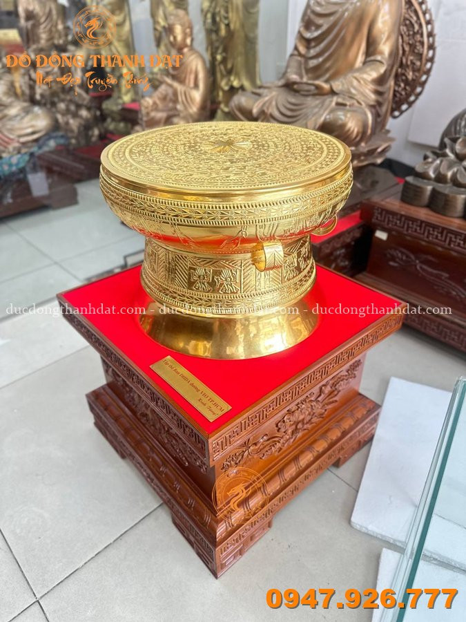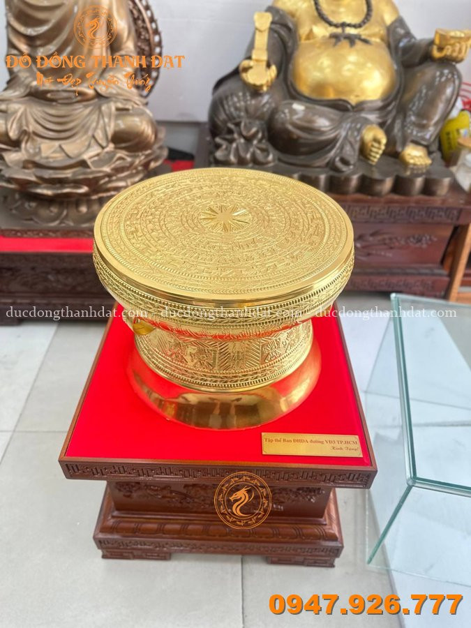 Trưng bày trống đồng dát vàng 24k giúp: