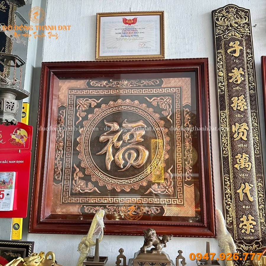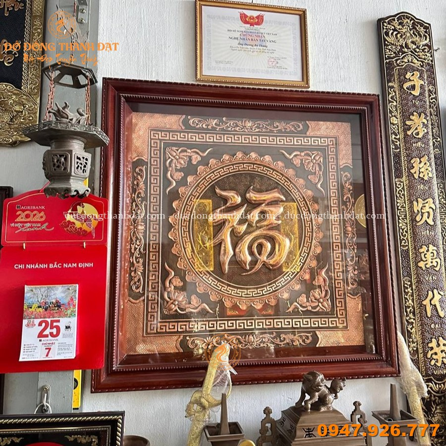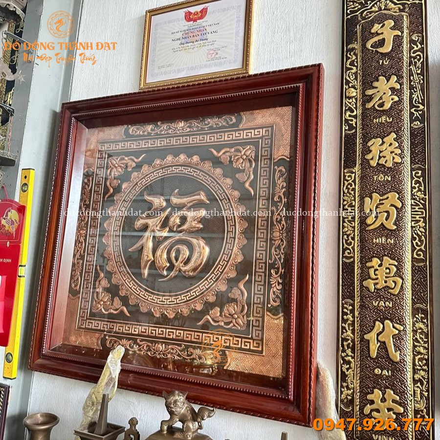 Tranh Chữ Phúc Đồng Đỏ 81cm – Đồng Gò Thúc Thủ Công, Khung Gỗ Tự Nhiên