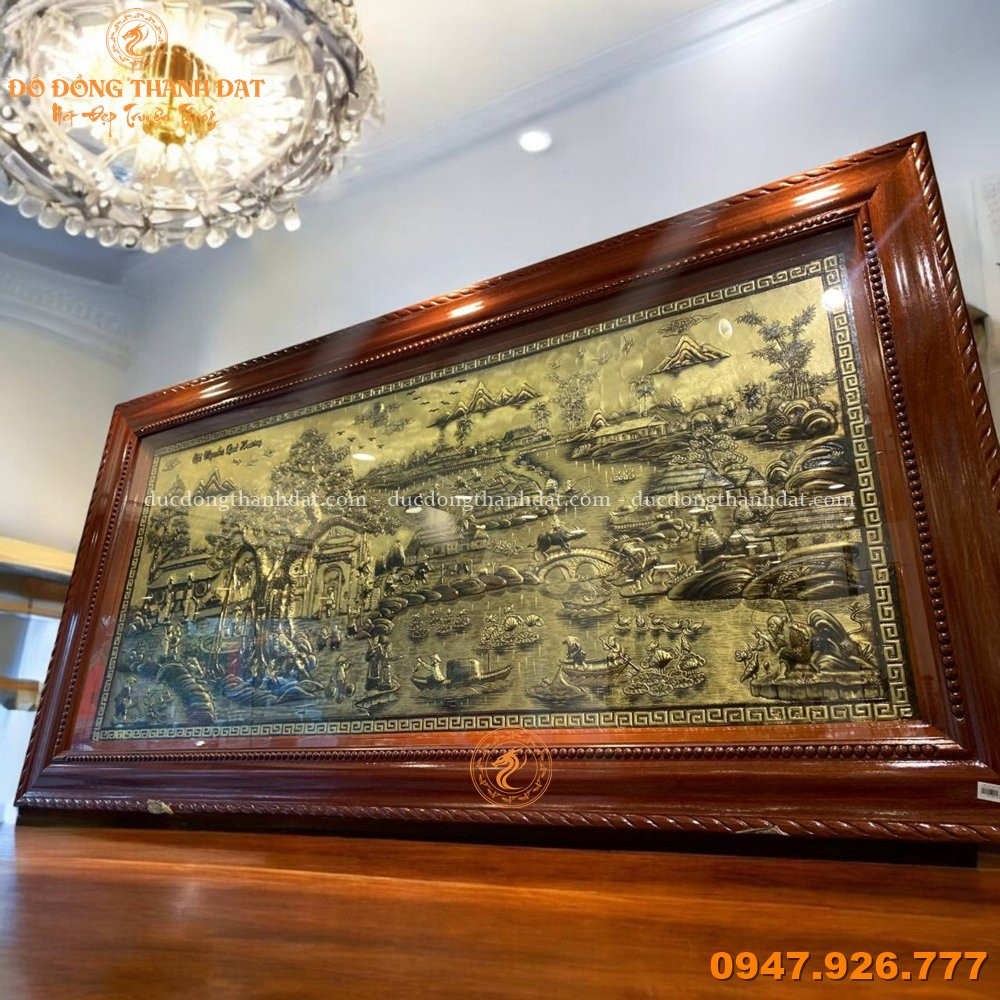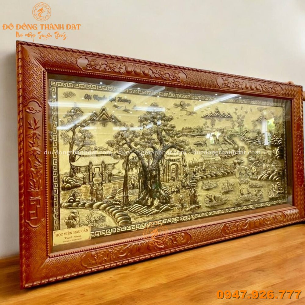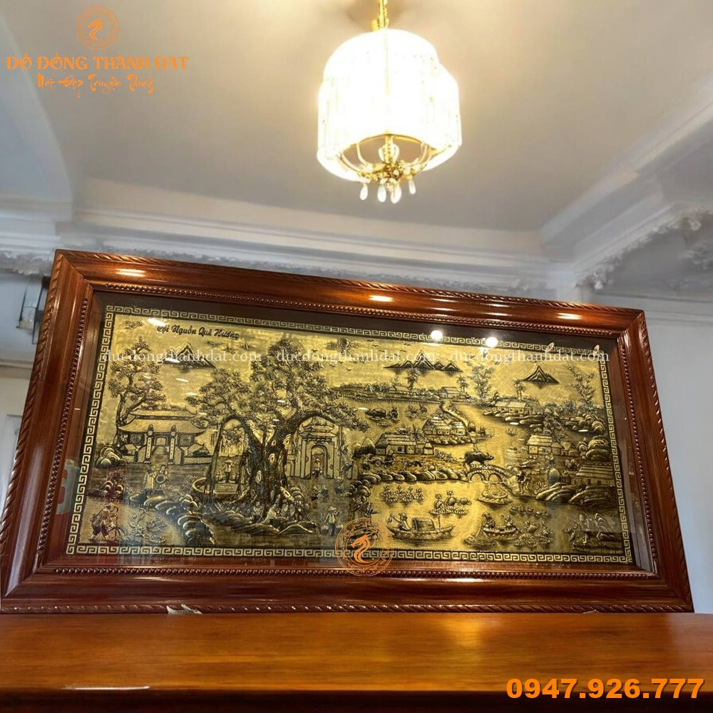 Từng đường nét trong tranh đều là kết tinh của tay nghề lâu năm từ nghệ nhân tại Đúc Đồng Thành Đạt, giúp khắc họa rõ nét hồn quê Việt Nam trong từng chi tiết.