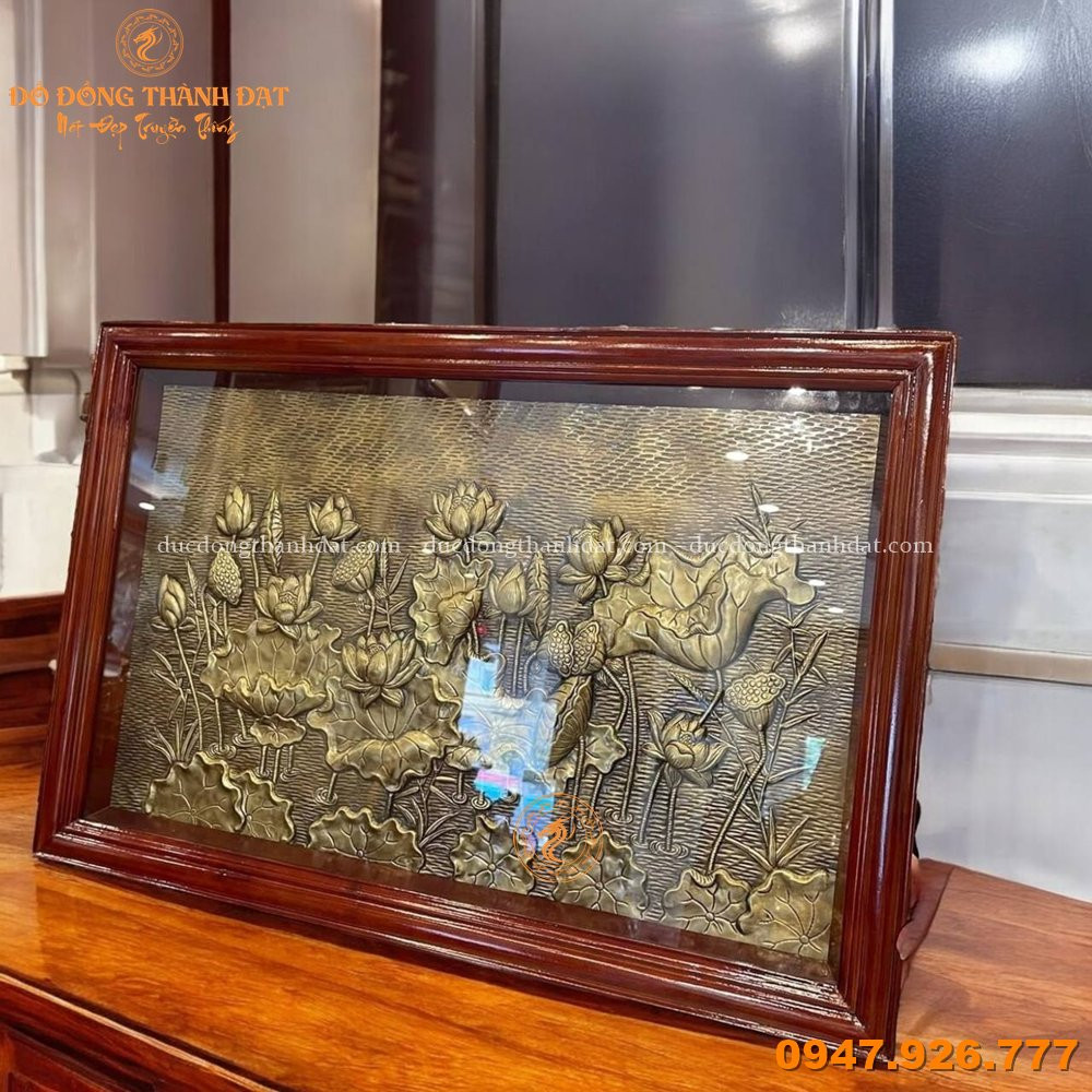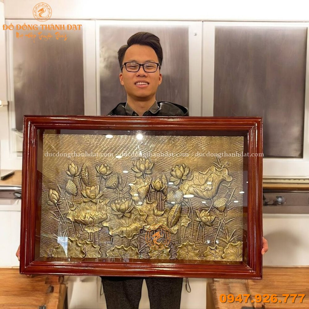 Tranh hoa sen là chủ đề quen thuộc trong mỹ thuật Việt, được nghệ nhân Đúc Đồng Thành Đạt khắc họa một cách chân thực: