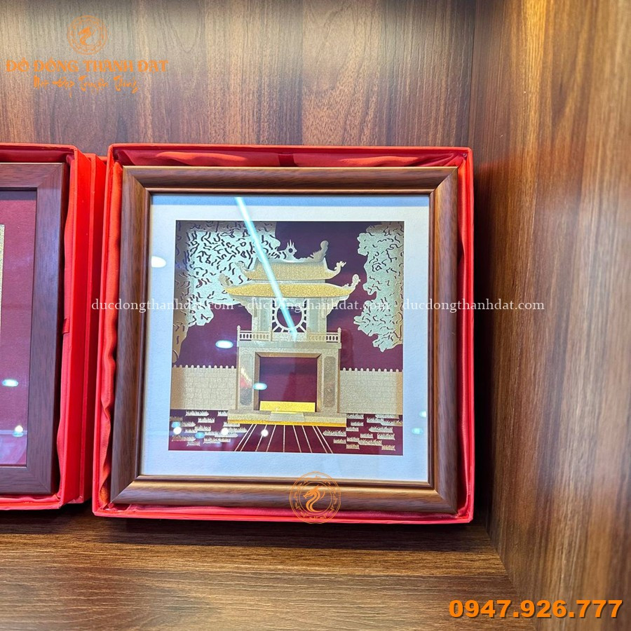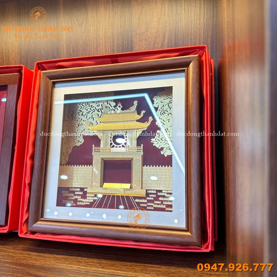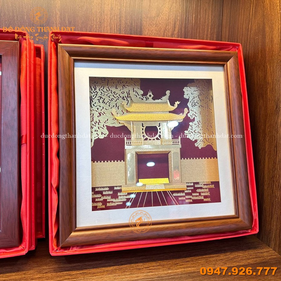 Tranh khuê văn các mạ vàng kt 23x23cm tại Đúc Đồng Thành Đạt tái hiện công trình này với đường nét tinh xảo, chuẩn tỷ lệ kiến trúc, mang đậm giá trị văn hóa và nghệ thuật. Lớp vàng 24K phủ trên nền đồng tạo nên vẻ đẹp sang trọng, trang nghiêm và bền vững theo thời gian.