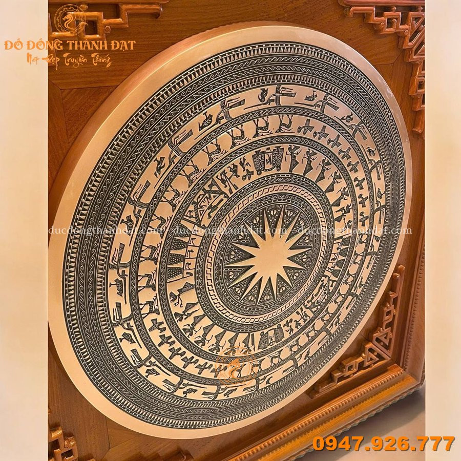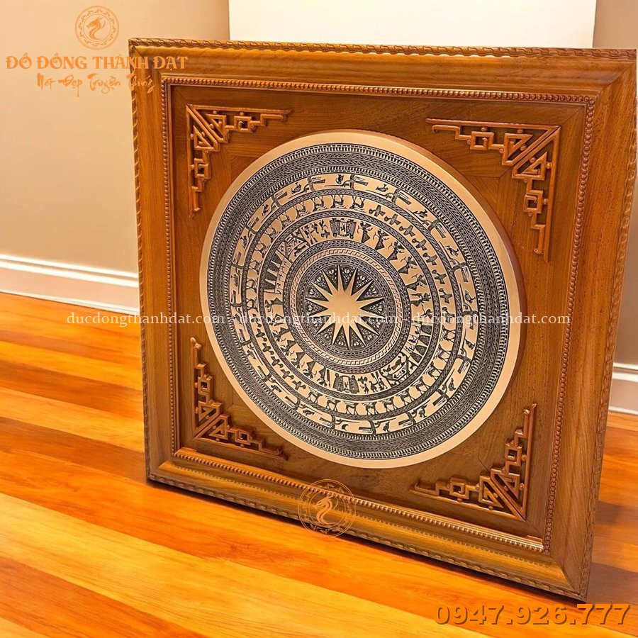 Tên sản phẩm: Tranh mặt trống vân chìm 60cm khung gỗ gụ 88×88