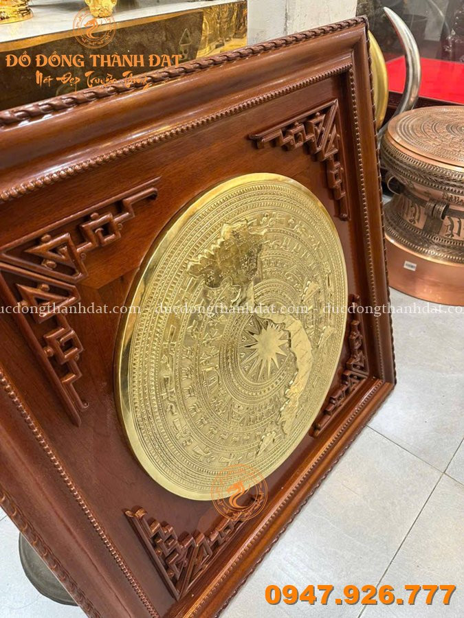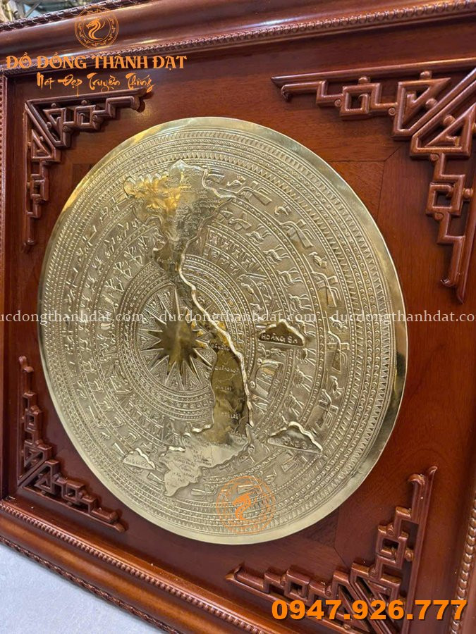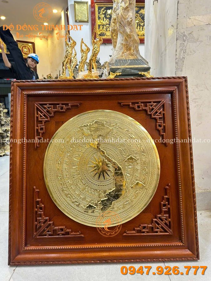 5. Giá tranh trống đồng bản đồ Việt Nam 50cm khung gỗ gụ 78cm