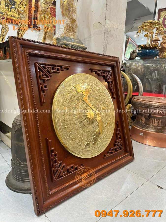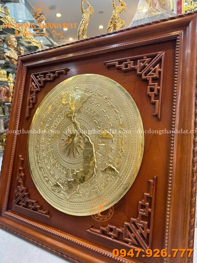 Tranh Trống Đồng Bản Đồ Việt Nam 50cm Khung Gỗ Gụ 78cm