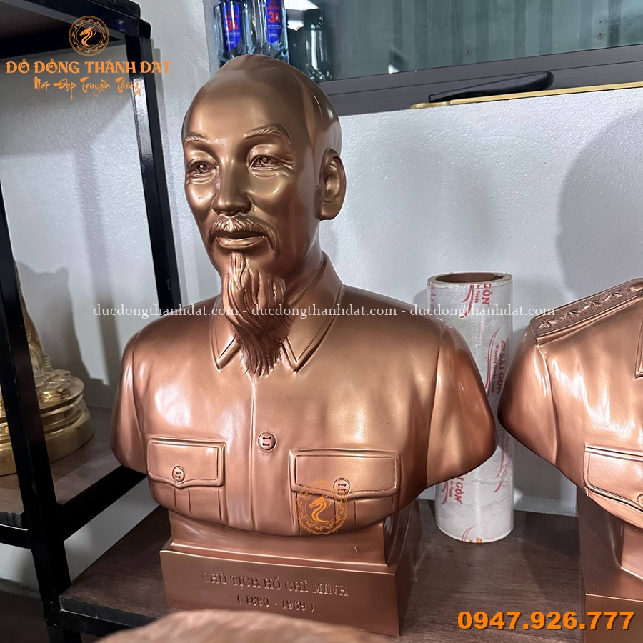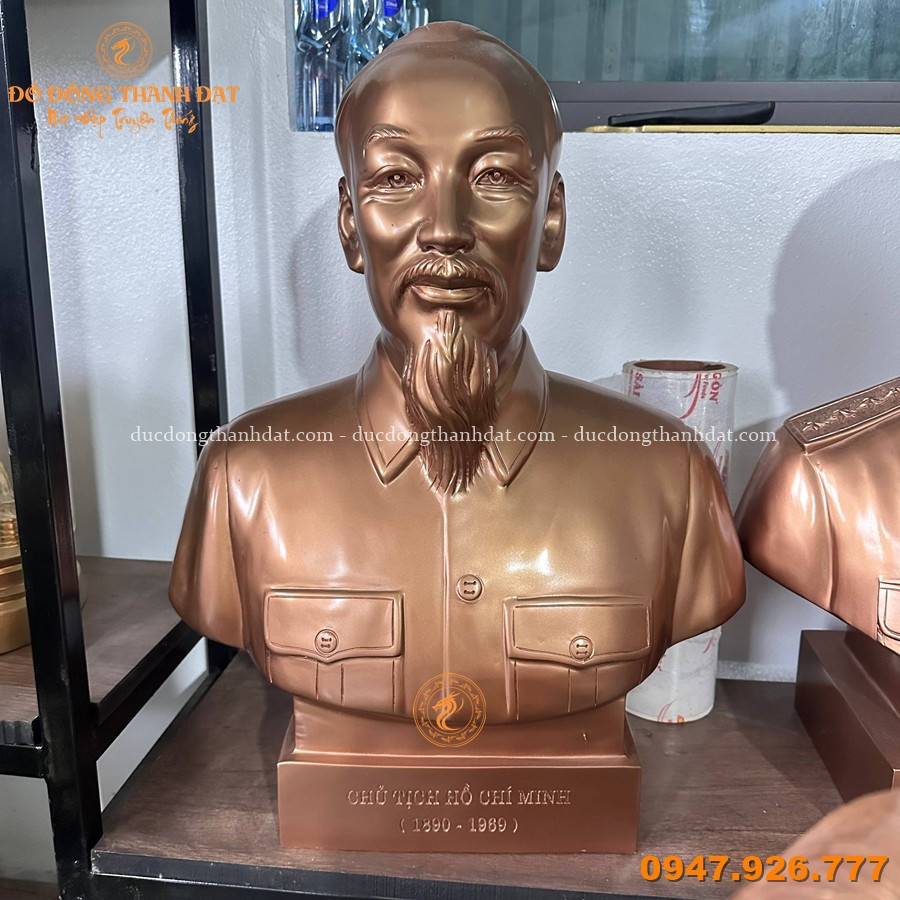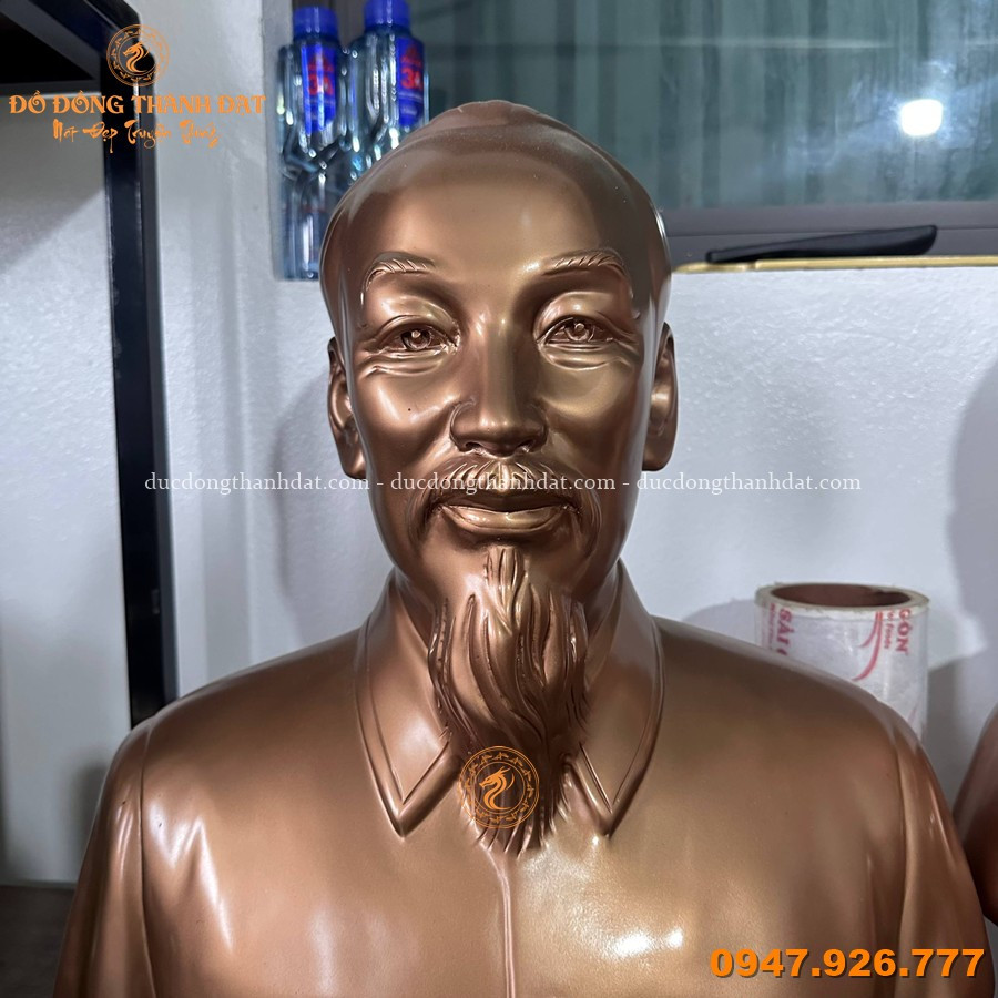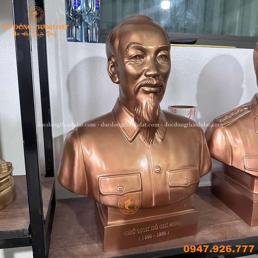 Tượng Bác Hồ Bằng Đồng Bán Thân Cao 60cm Màu Hun