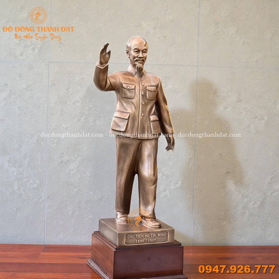 - Kiểu cách: Dáng đứng vẫy tay được chế tác thủ công tinh xảo, thần thái Bác uy nghiêm biểu tượng của trí tuệ và khí phách dân tộc Việt Nam