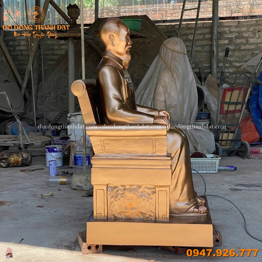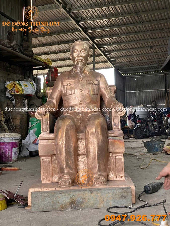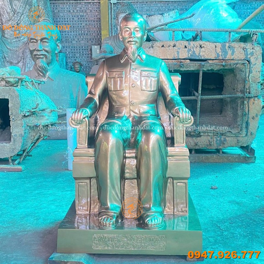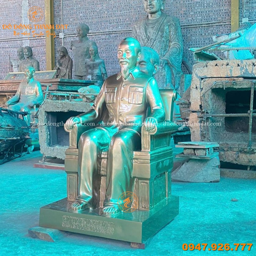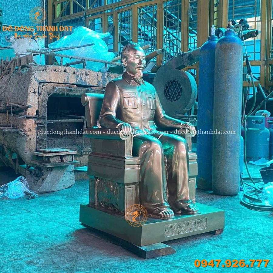 Tượng Bác Hồ ngồi ghế salon cao 1m07 được chế tác theo quy trình đúc đồng thủ công truyền thống, kết hợp kỹ thuật hiện đại để đảm bảo độ chính xác và độ bền lâu dài: