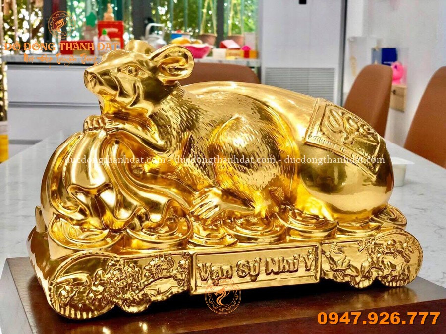 Tượng Chuột Bằng Đồng Dát Vàng 24K KT 18x28cm – Linh Vật Phong Thủy Tài Lộc
