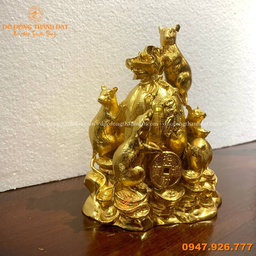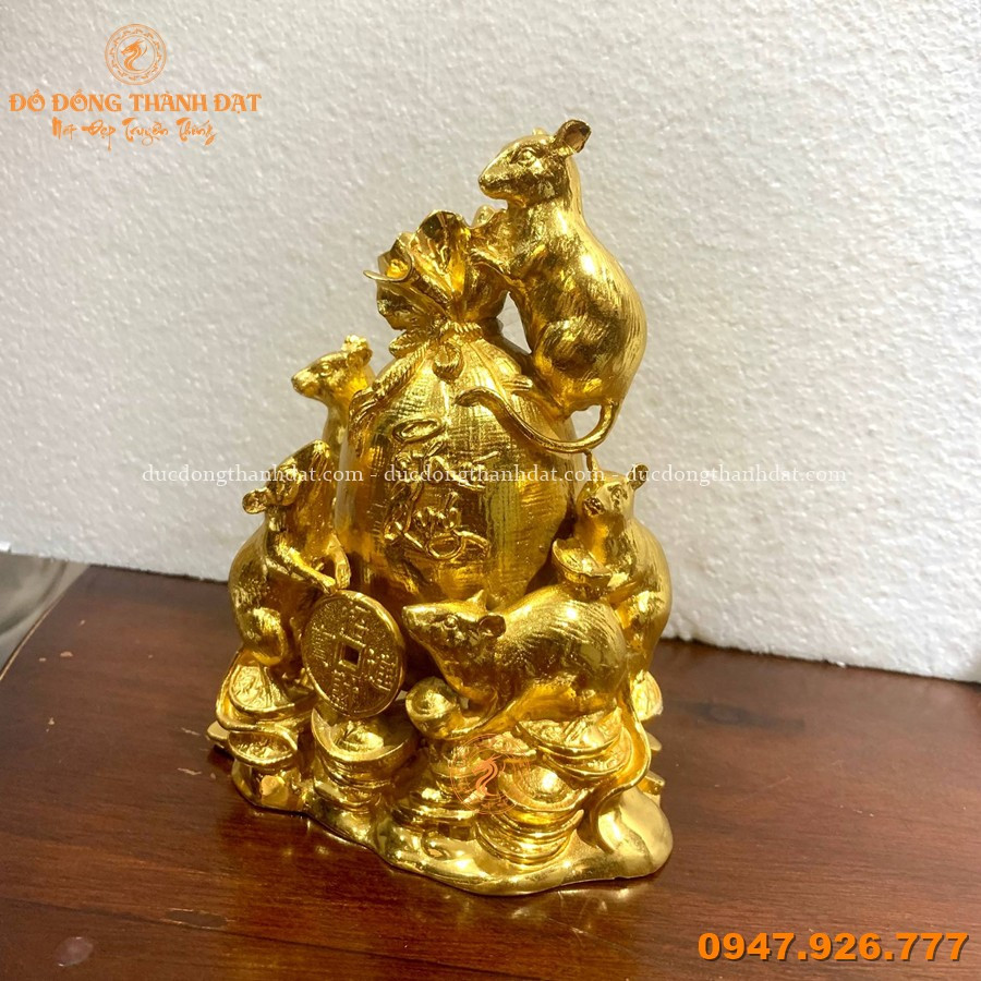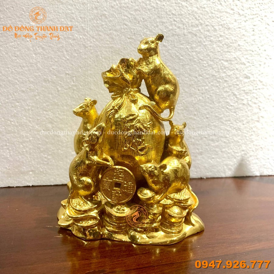 Tượng Đàn Chuột Ôm Túi Tiền Mạ Vàng Cao 16cm – Biểu Tượng Sự Thông Minh và Tài Lộc Và No Đủ