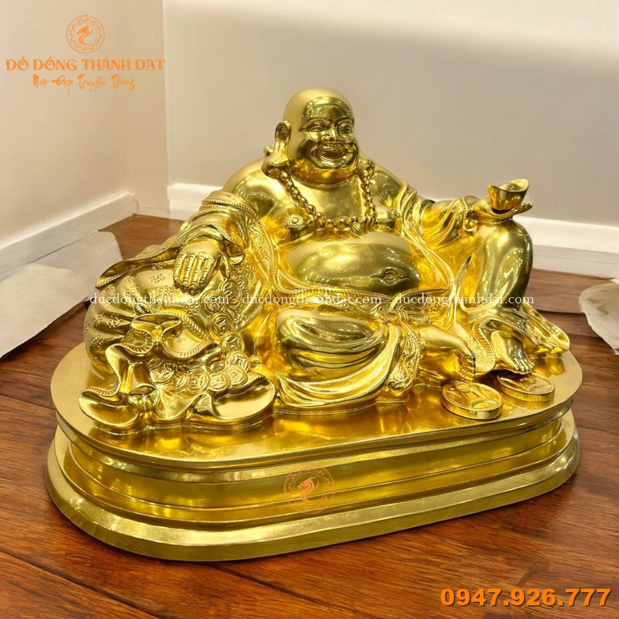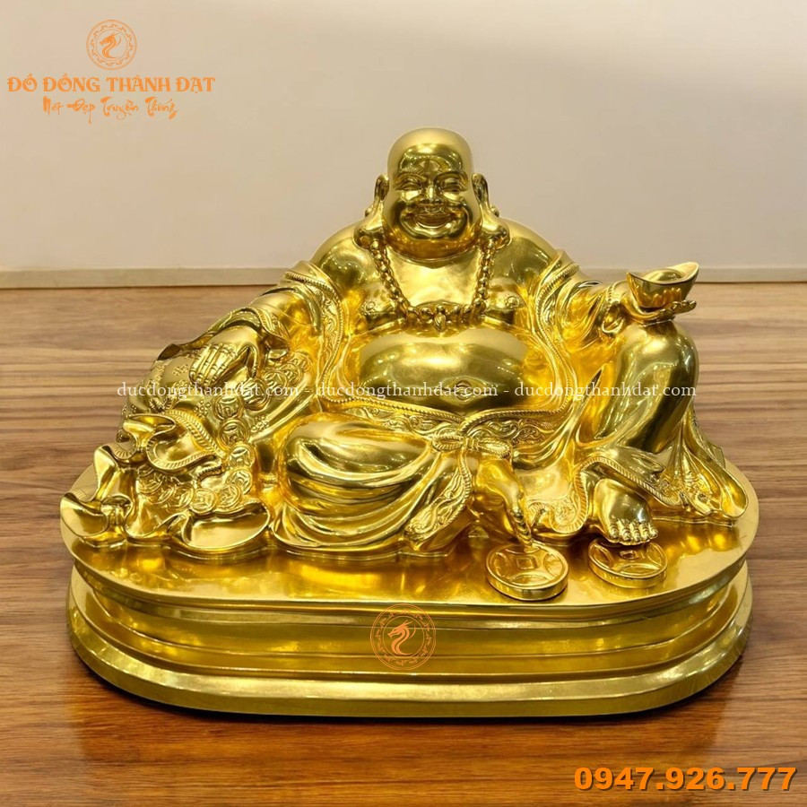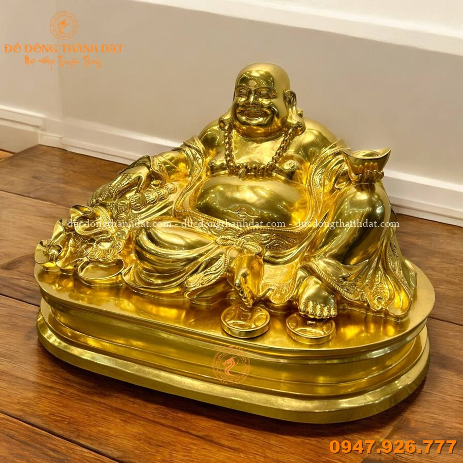 Tượng Di Lặc 30x50cm dát vàng 9999 đúc từ đồng nguyên khối cao cấp