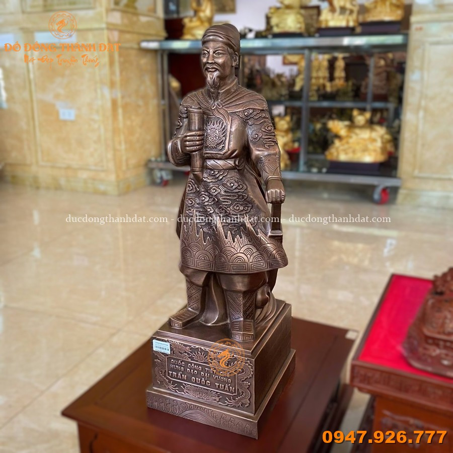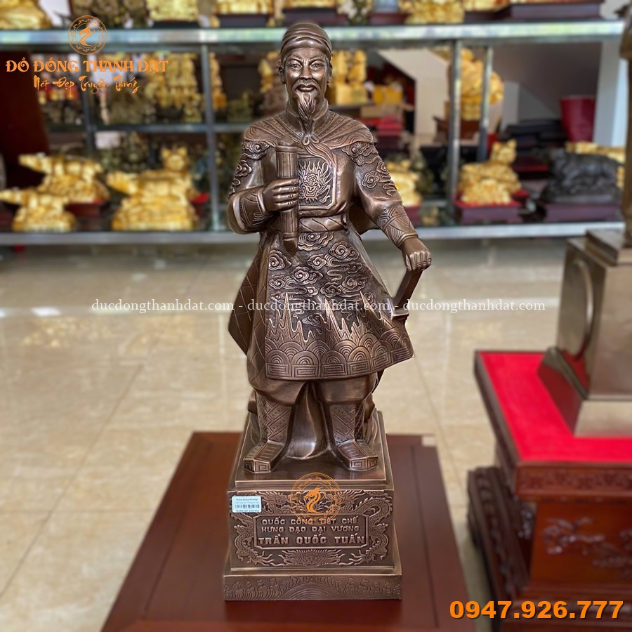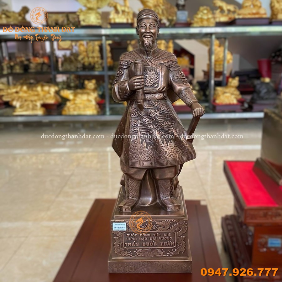 Tượng Trần Hưng Đạo hun cổ là dòng tượng được nhiều khách hàng lựa chọn để trưng bày phòng khách, phòng làm việc, phòng truyền thống hay làm quà tặng mang giá trị văn hóa – phong thủy sâu sắc. Phiên bản cao 70cm mang vẻ đẹp trầm mặc, cổ kính và đầy uy nghi.