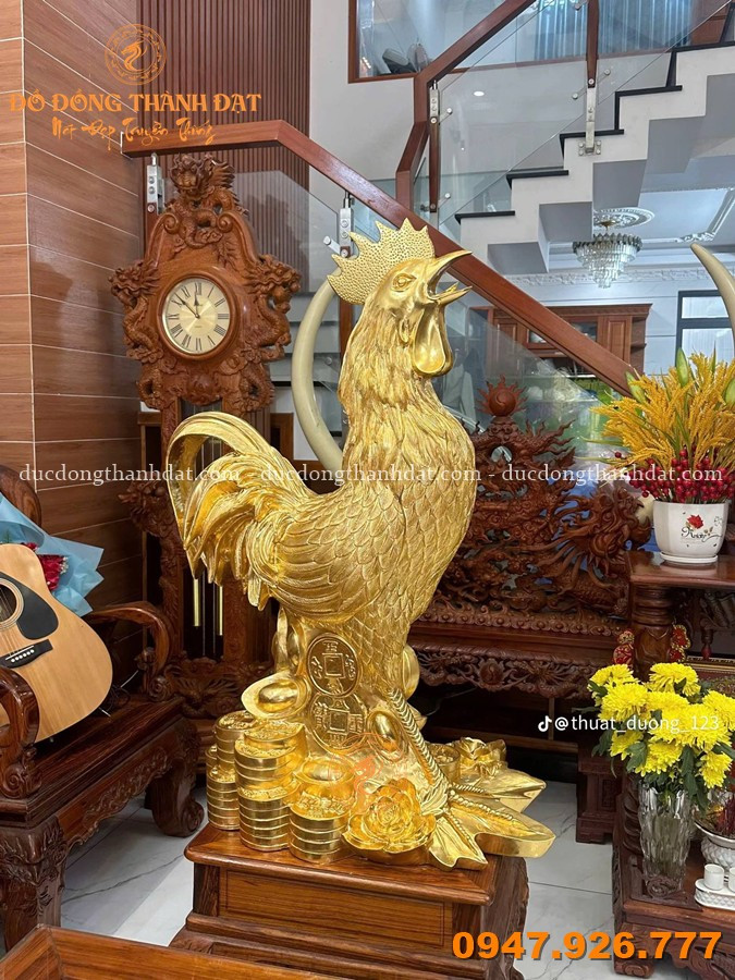 Tượng Gà Dát Vàng 24K Cao 68cm – Linh Vật Phong Thủy Mang Tài Lộc Và May Mắn