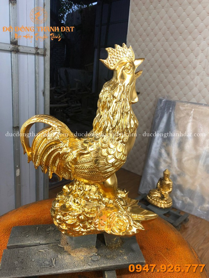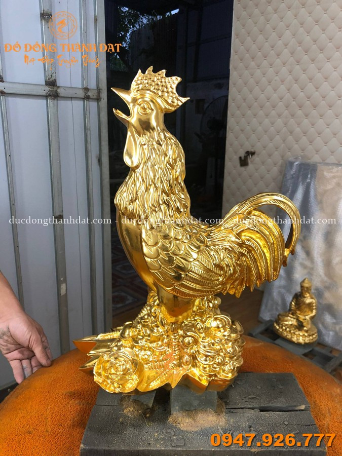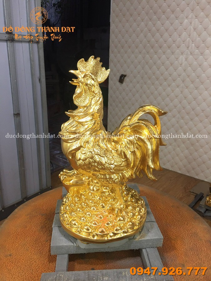 Tượng gà phong thủy dát vàng chế tác thủ công tinh xảo