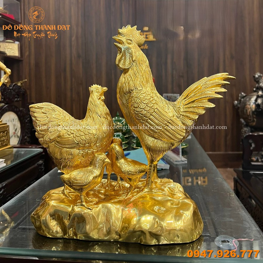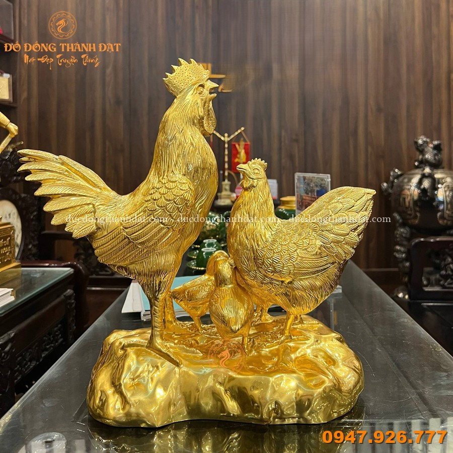Tượng Gia Đình Gà Dát Vàng 9999 Cao 36cm – Biểu Tượng Sự Ấm No Và Hạnh Phúc