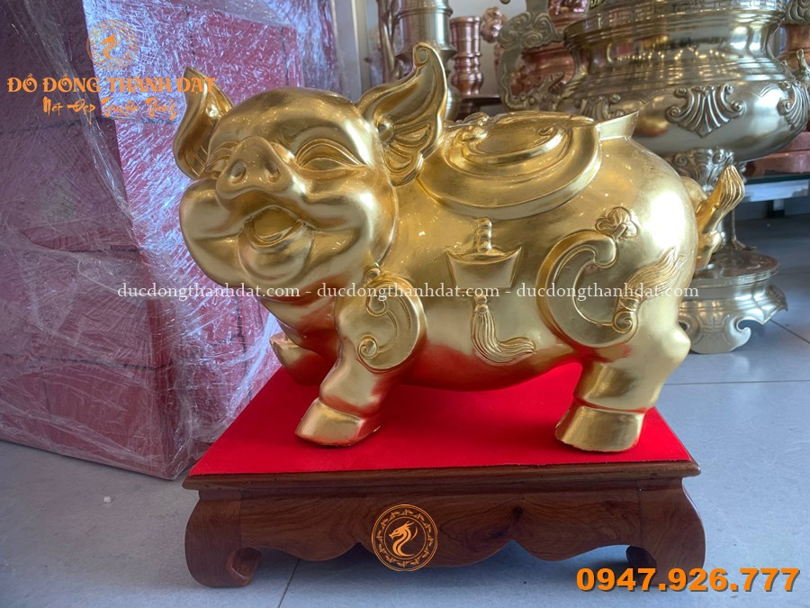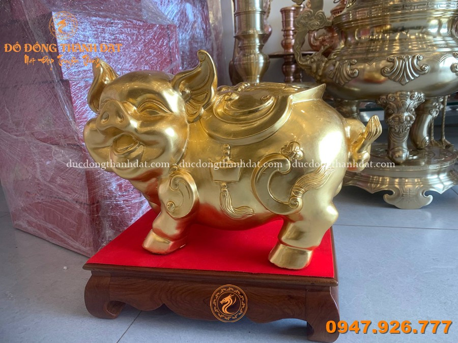 Tượng Heo Bằng Đồng Dát Vàng 24k Dài 38cm – Biểu Tượng Của Phú Quý Và Sung Túc