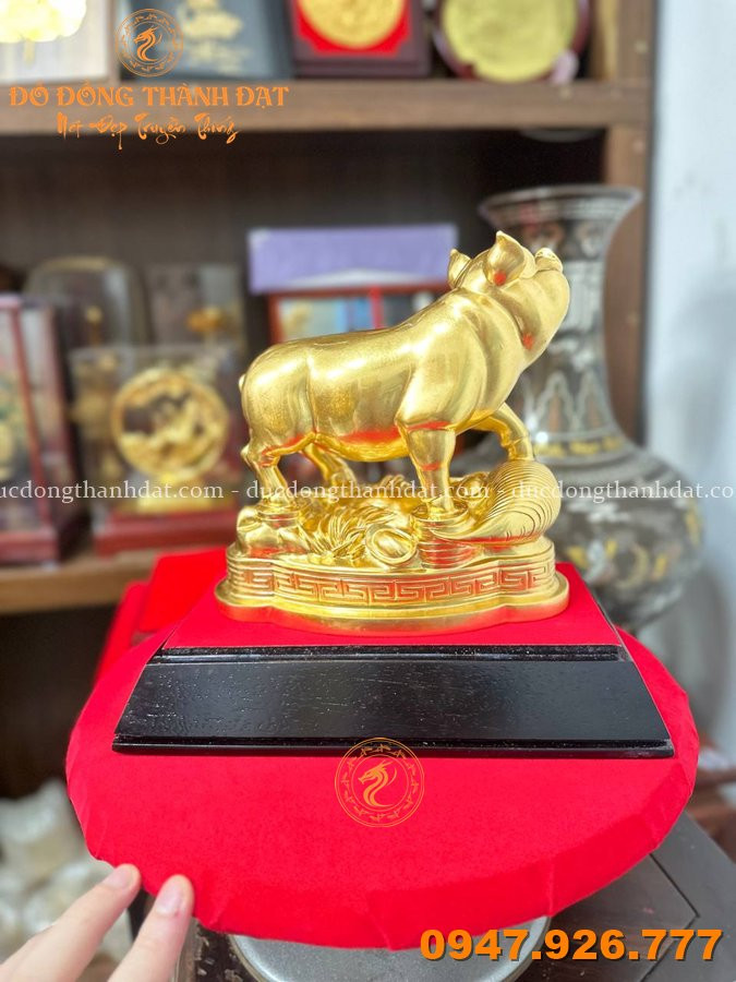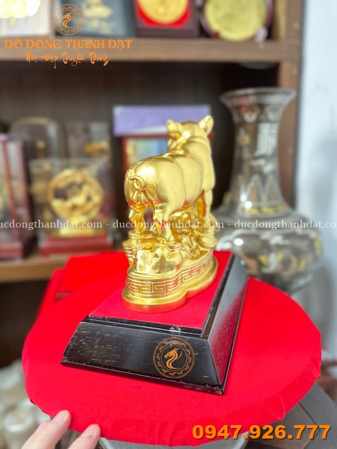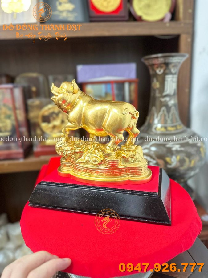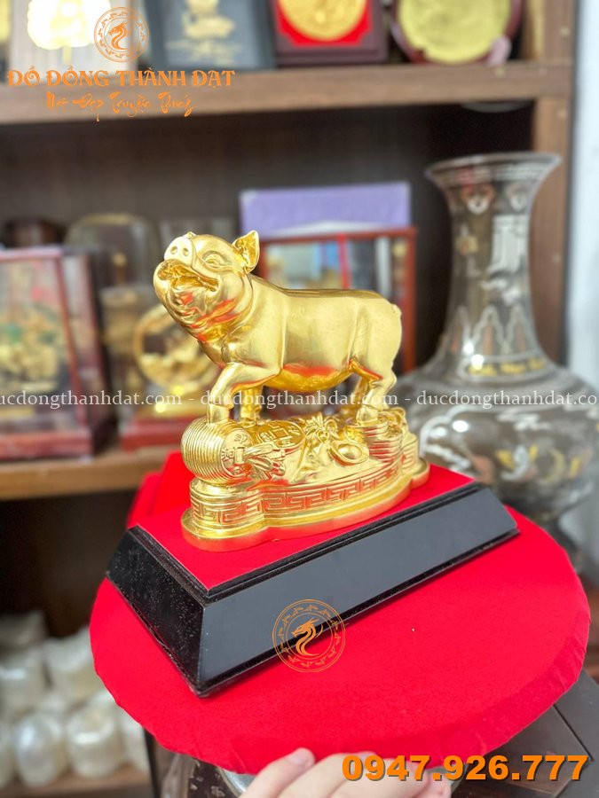 4. Giá Tượng Heo Bằng Đồng Dát Vàng 9999 Cao 17cm