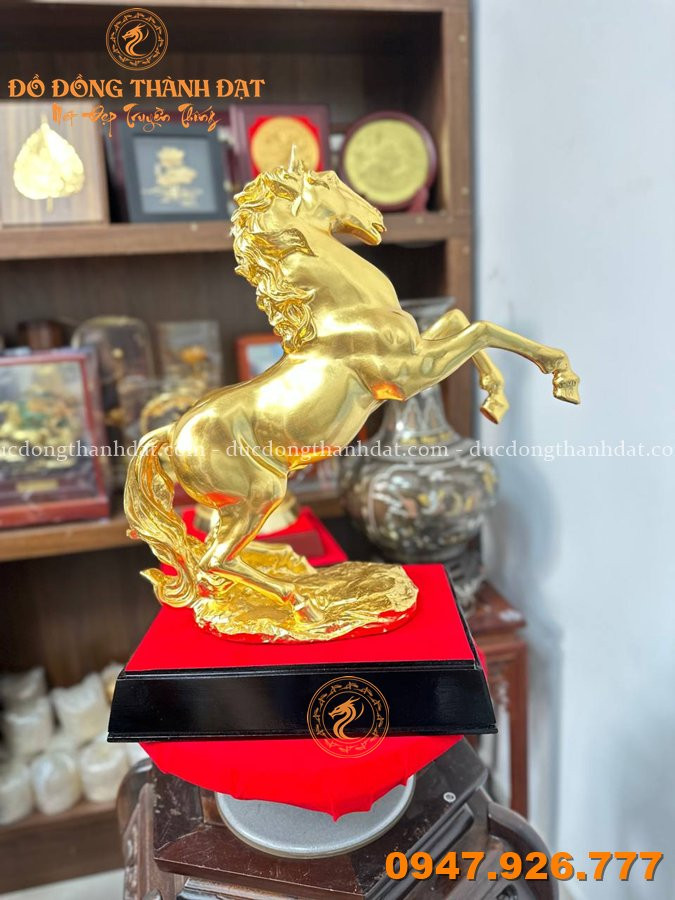 Tượng Ngựa Bằng Đồng Dát Vàng 9999 Cao 37cm – Biểu Tượng Mạnh Mẽ Cho Thành Công & Thịnh Vượng
