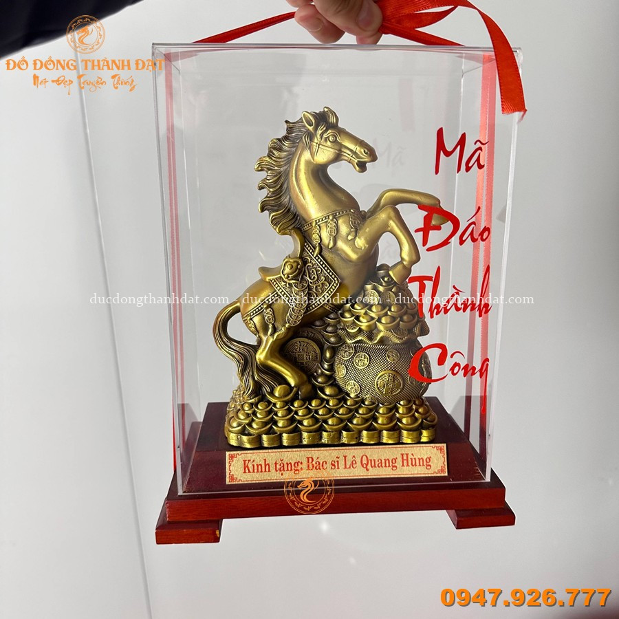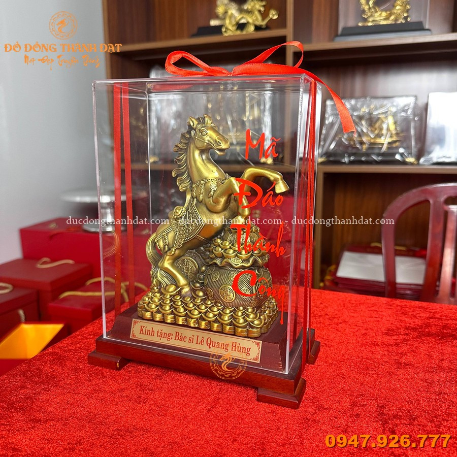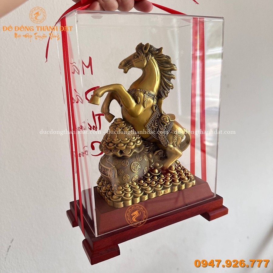 Tượng Ngựa Bằng Đồng Ôm Hũ Vàng Cao 18cm