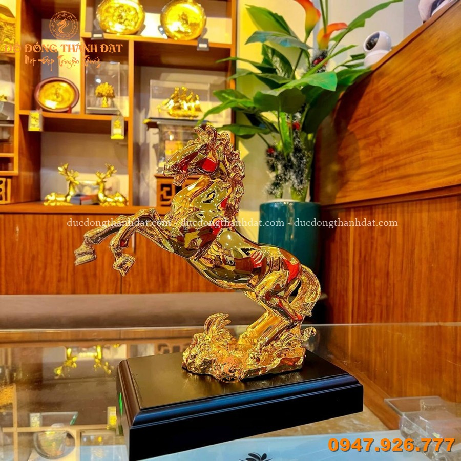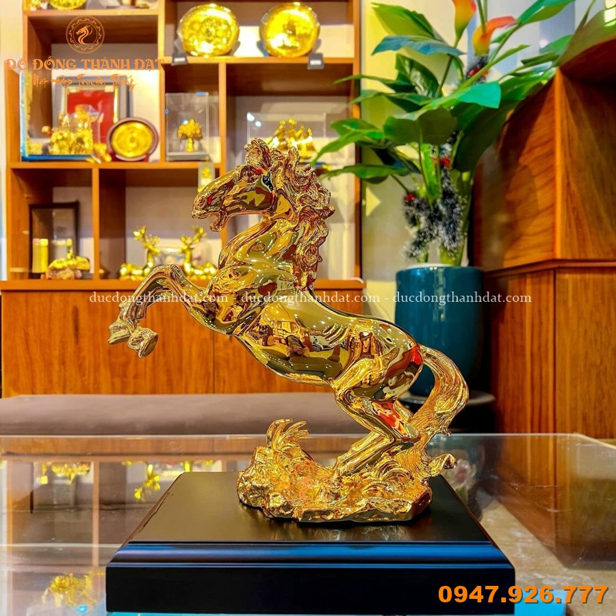 - Kiểu cách: Dáng đứng ngựa tung vó, được làm thủ công tinh xảo, mạ vàng sang trọng