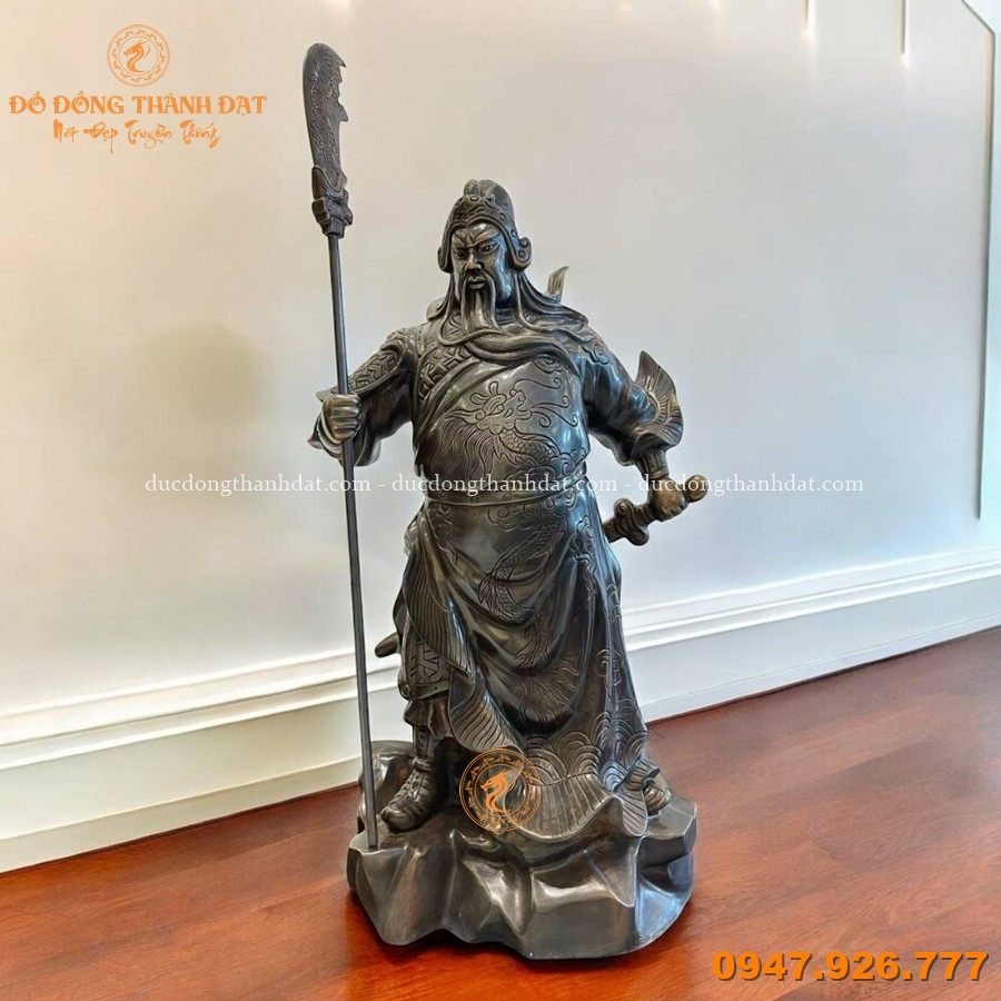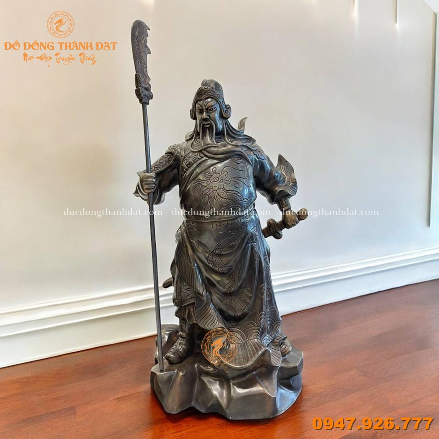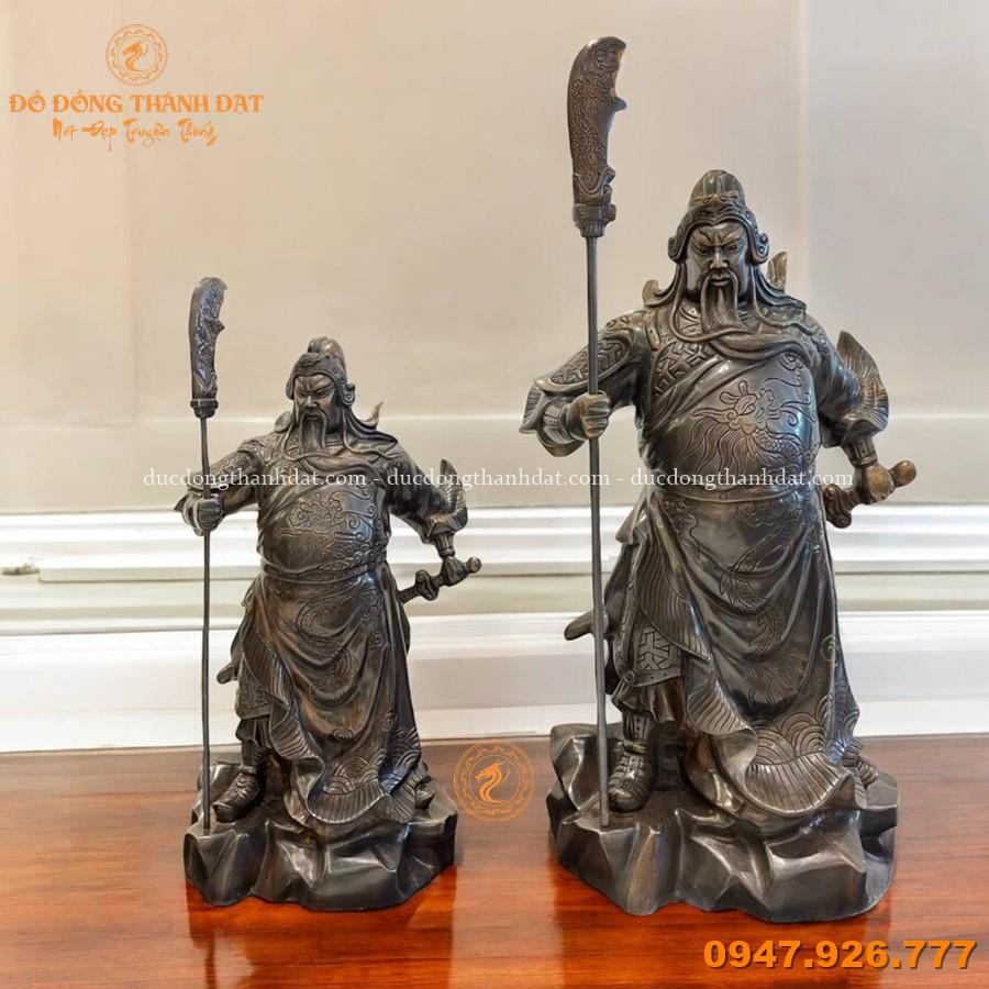 - Kiểu cách: Chế tác đồng đỏ thủ công tinh xảo hình tượng Quan Công uy nghi với thanh long đao, biểu tượng của chính khí, trung nghĩa và uy quyền.