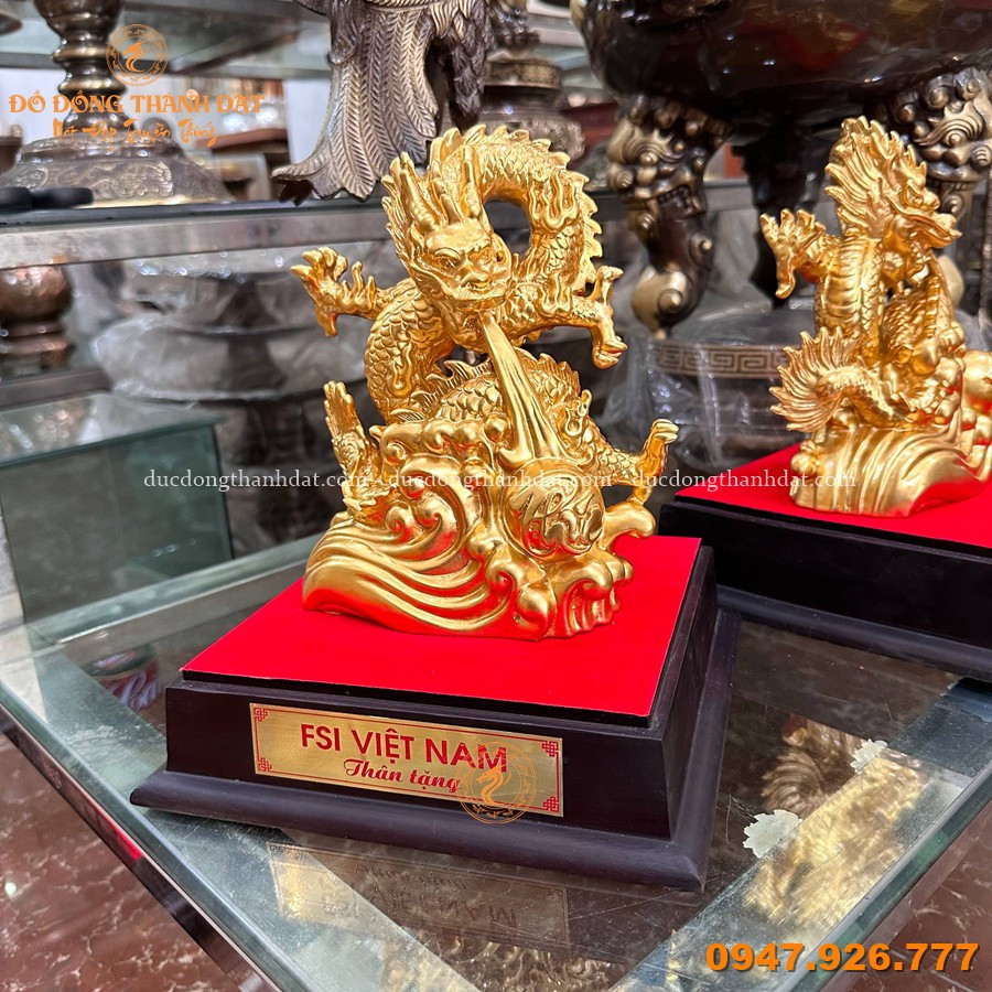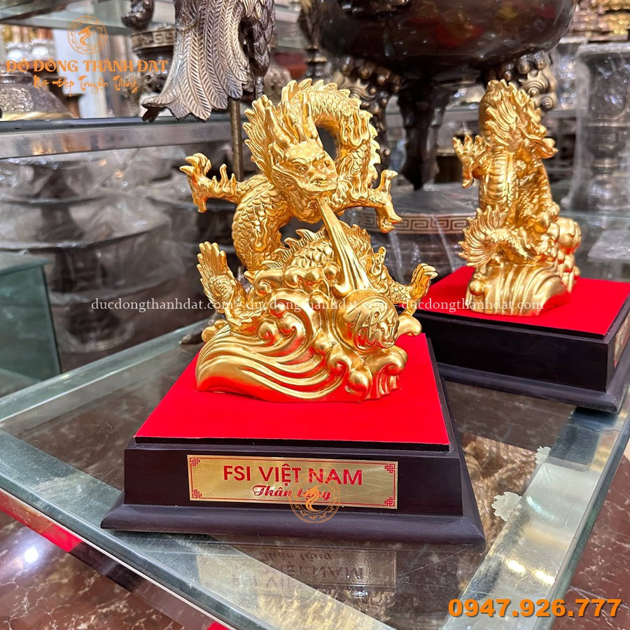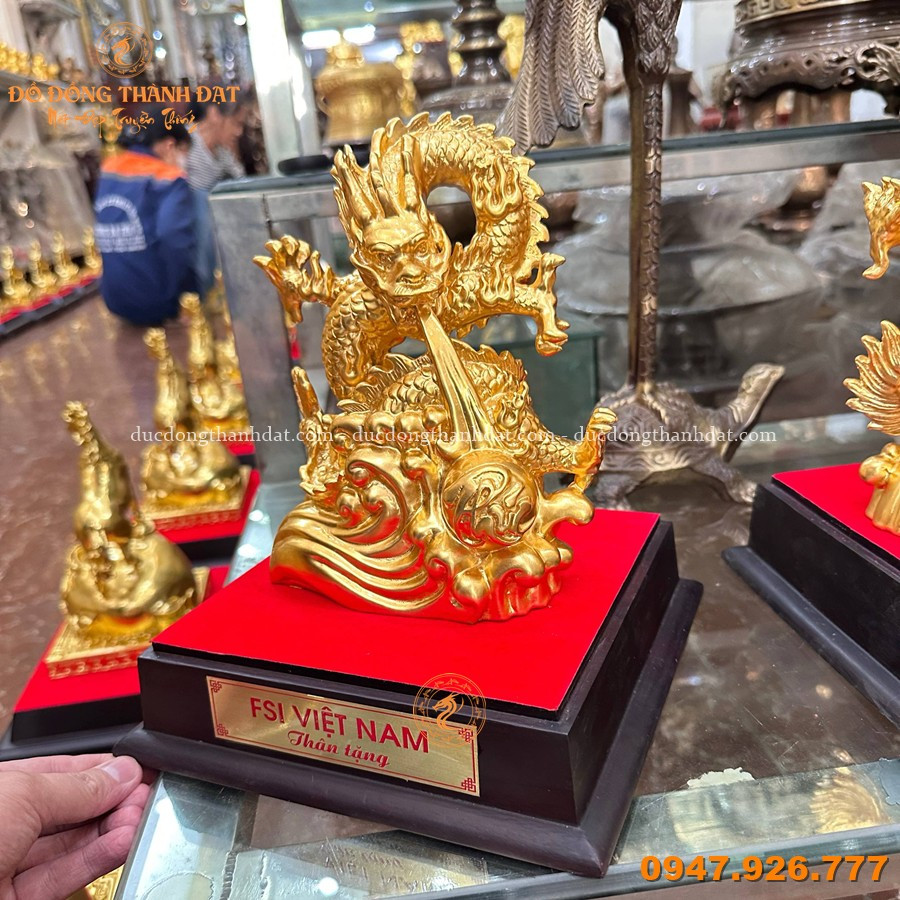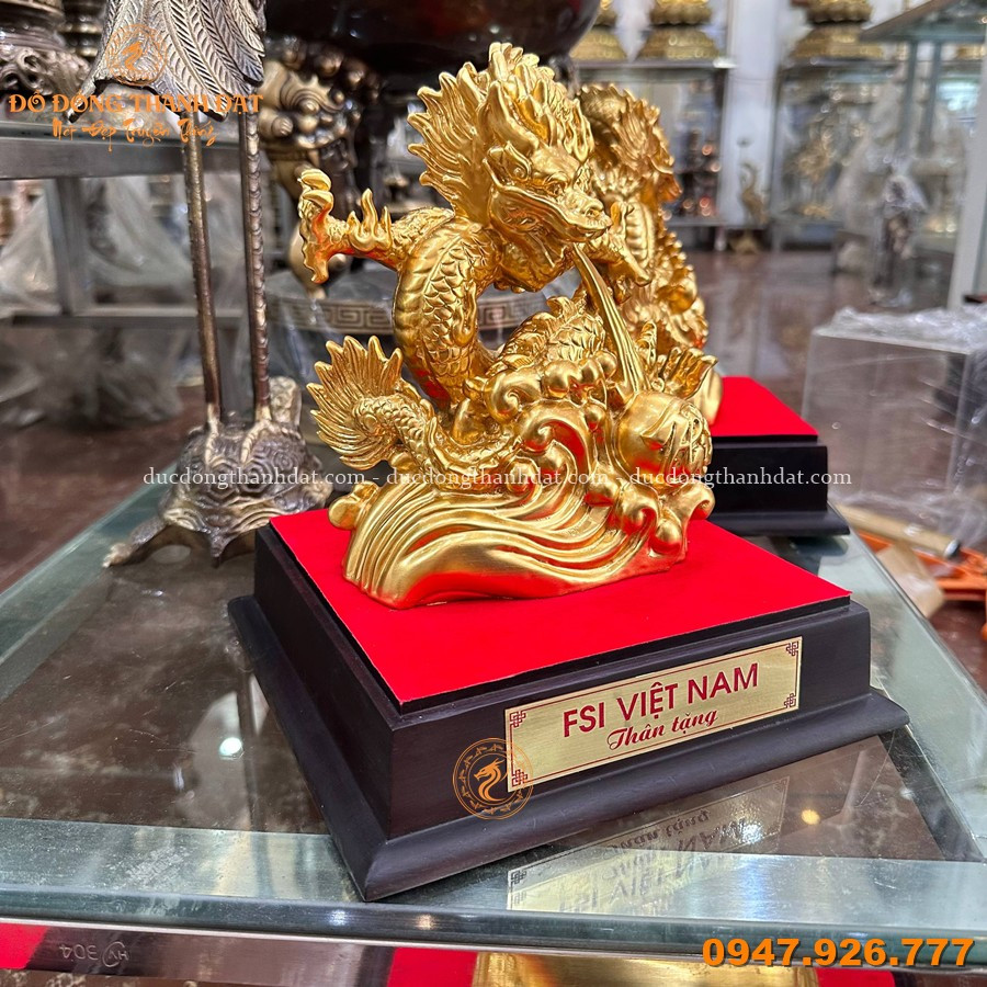 Tượng rồng chữ Phúc dát vàng 24K 20cm là dòng sản phẩm phong thủy cao cấp, được chế tác tinh xảo từ chất liệu đồng và phủ lớp vàng 24K sáng bóng, sang trọng.