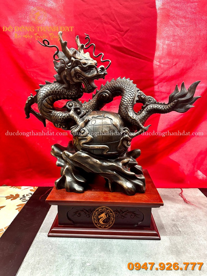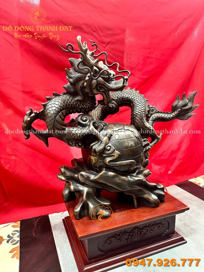 Tượng Rồng Ôm Địa Cầu Đồng Đỏ Hun Kt: 45 x 55 – Biểu Tượng Quyền Lực Và Thịnh Vượng