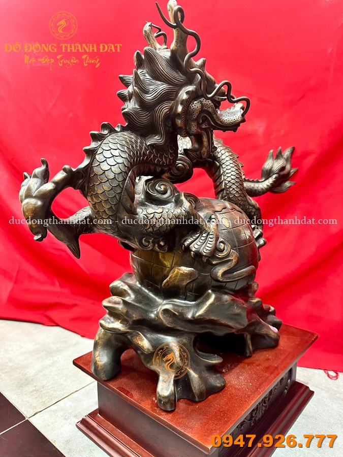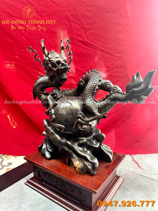 - Tên sản phẩm: Tượng rồng ôm địa cầu đồng đỏ