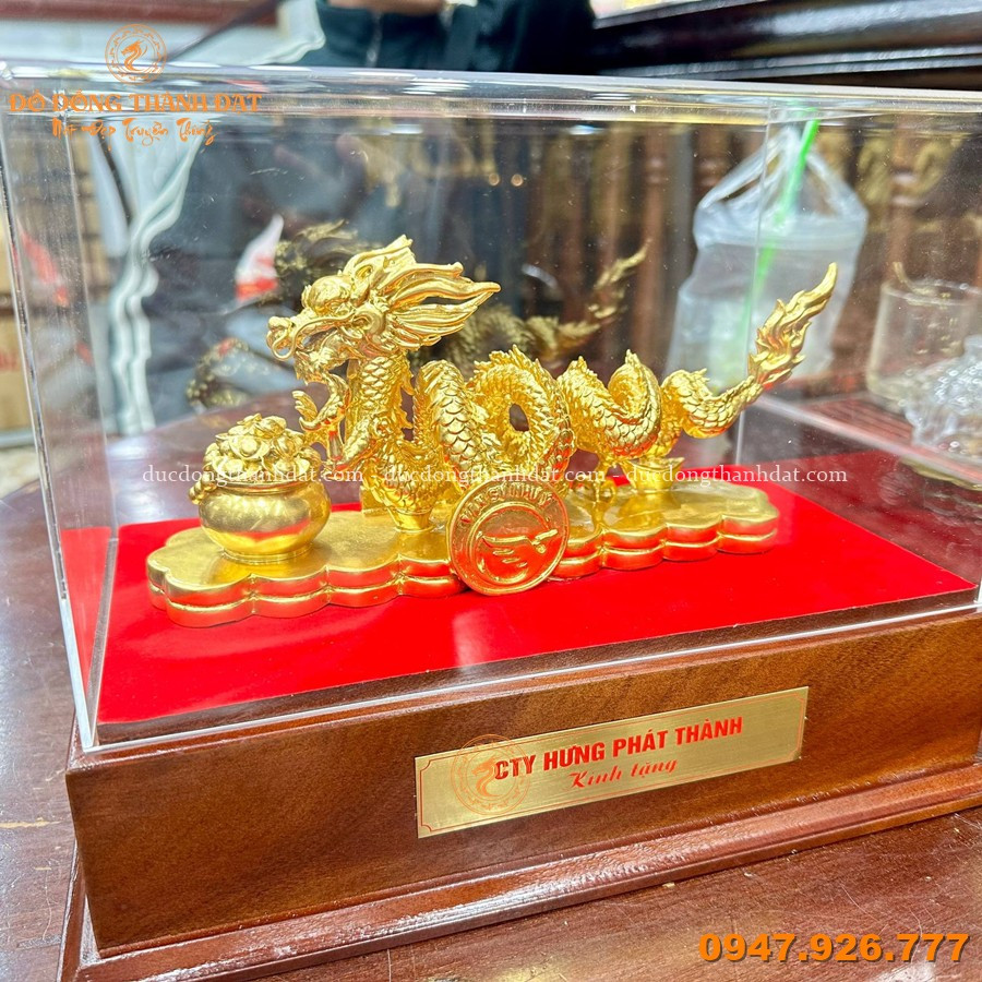 TƯỢNG RỒNG ÔM HŨ VÀNG DÀI 30CM – BIỂU TƯỢNG QUYỀN LỰC & TÀI LỘC