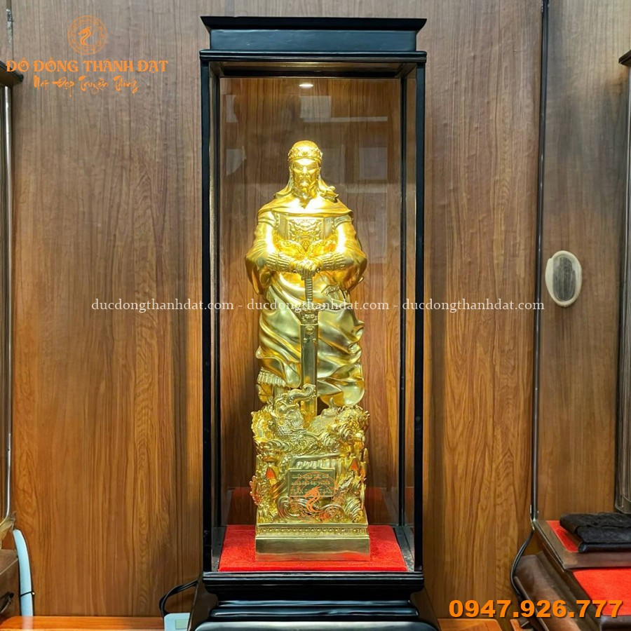 Tại Đúc Đồng Thành Đạt, mẫu tượng này được chế tác hoàn toàn thủ công từ chất liệu đồng vàng cao cấp, sau đó được dát vàng 9999 tinh xảo, tạo nên vẻ đẹp sang trọng, đẳng cấp và trường tồn theo thời gian. Đây không chỉ là một tác phẩm nghệ thuật mà còn là vật phẩm mang ý nghĩa phong thủy sâu sắc.
